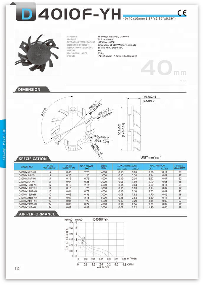 พัดลมระบายความร้อนแบบไร้โครง D4010F-YH แบบแกนหมุน ทนอุณหภูมิสูง 5V/12V/24V ขนาด 40x40x10 มม. OEM