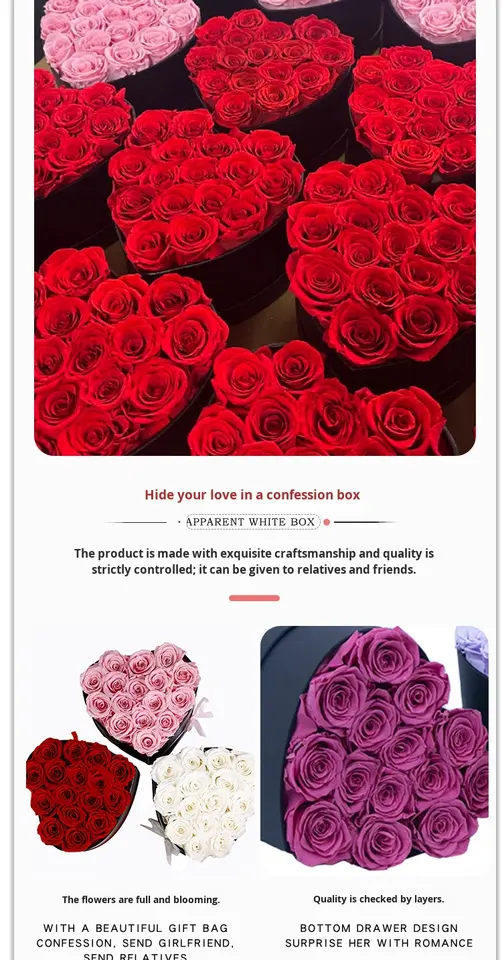 กล่องของขวัญดอกกุหลาบรูปหัวใจทำมือ D432 Eternal Flower ของขวัญสุดหรูจากโรงงาน ขายส่ง กระเช้าดอกไม้ ของขวัญวันเกิด งานแต่งงาน งานเทศกาล