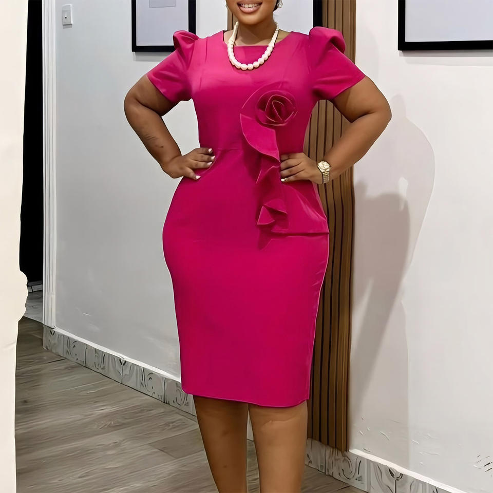 เดรสทำงานทรงดินสอ รุ่น D571 สำหรับผู้หญิง ปี 2026 แบบใหม่ ทรงเข้ารูป แขนสั้น แต่งระบายชายกระโปรง ลายดอกไม้ เหมาะสำหรับใส่ทำงาน