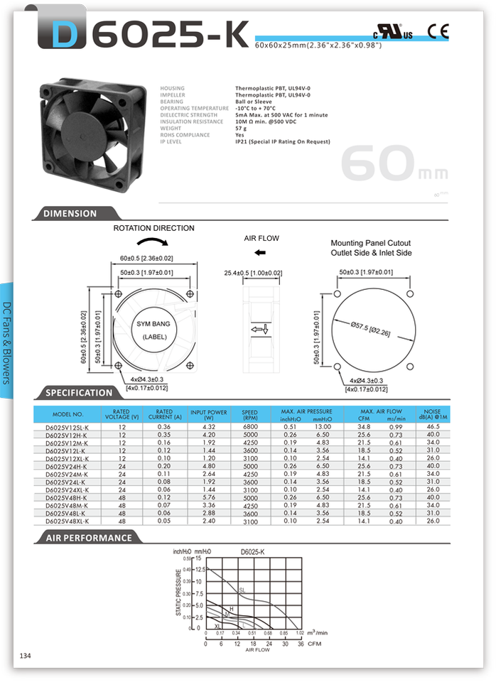 พัดลมแกนแบบกันน้ำ IP55 รุ่น D6025-K ขนาด 60x60x25 มม. 12V พร้อมลูกปืนพลาสติก ทนความร้อนสูง สำหรับอุปกรณ์อุตสาหกรรม รับผลิตแบบ OEM/ODM
