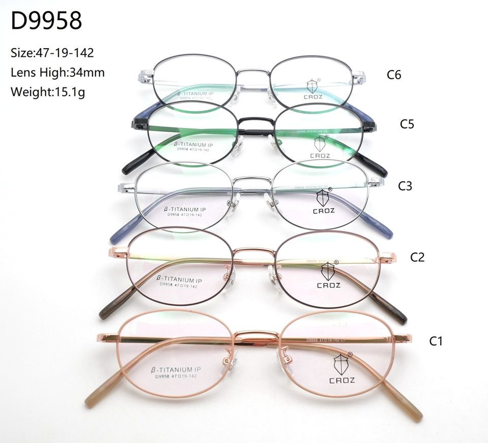 กรอบแว่นตาเมมโมรี่เมทัล D9958 น้ำหนักเบา ทนทาน ทันสมัย ดีไซน์ยืดหยุ่นเพื่อความสบาย