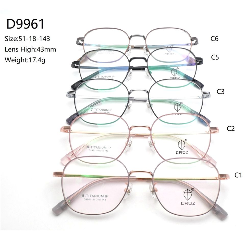 กรอบแว่นตาเมมโมรี่เมทัล D9961 น้ำหนักเบา ทนทาน ทันสมัย ดีไซน์ยืดหยุ่นเพื่อความสบาย