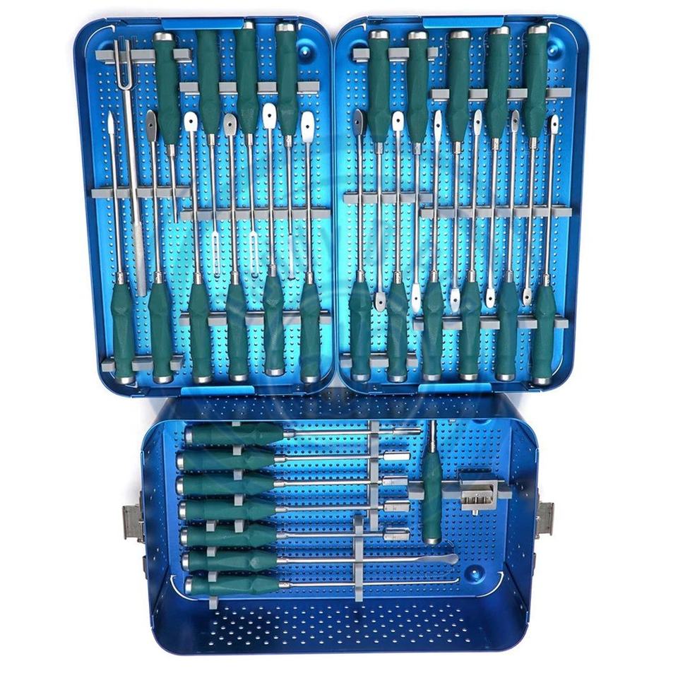 ชุดเครื่องมือผ่าตัดออร์โธปิดิกส์ทำจากสเตนเลสสตีลและอะลูมิเนียมชุดกระดูกสันหลังส่วนเอวไทเทเนียม ISO13485 CE
