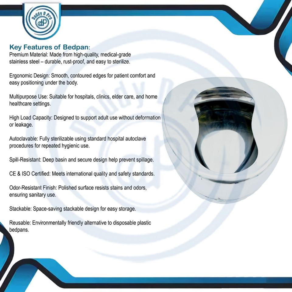 Daddy D Pro กระโถนสแตนเลสสตีลสำหรับใช้ในโรงพยาบาลทนทานและไม่เป็นสนิมได้รับการรับรองจาก ISO13485