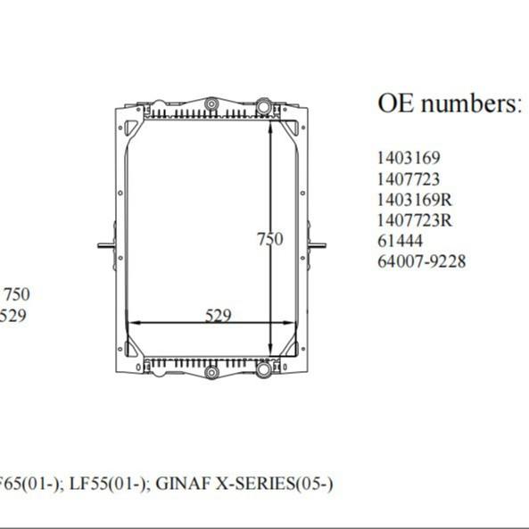 หม้อน้ำรถบรรทุกหนัก DAF รุ่น 1407723R 61444 อะลูมิเนียมพร้อมวัสดุพลาสติก รุ่น 1403169R