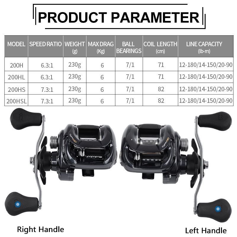 รอกเบทคาสติ้ง DAIWA TATULA TYPE-HD 7+1BB สำหรับน้ำเค็ม ใช้ได้ทั้งมือซ้าย/ขวา รุ่น 200H/200HL/200HS/200HSL ตัวเรือนโลหะ ของแท้จากตัวแทนจำหน่าย