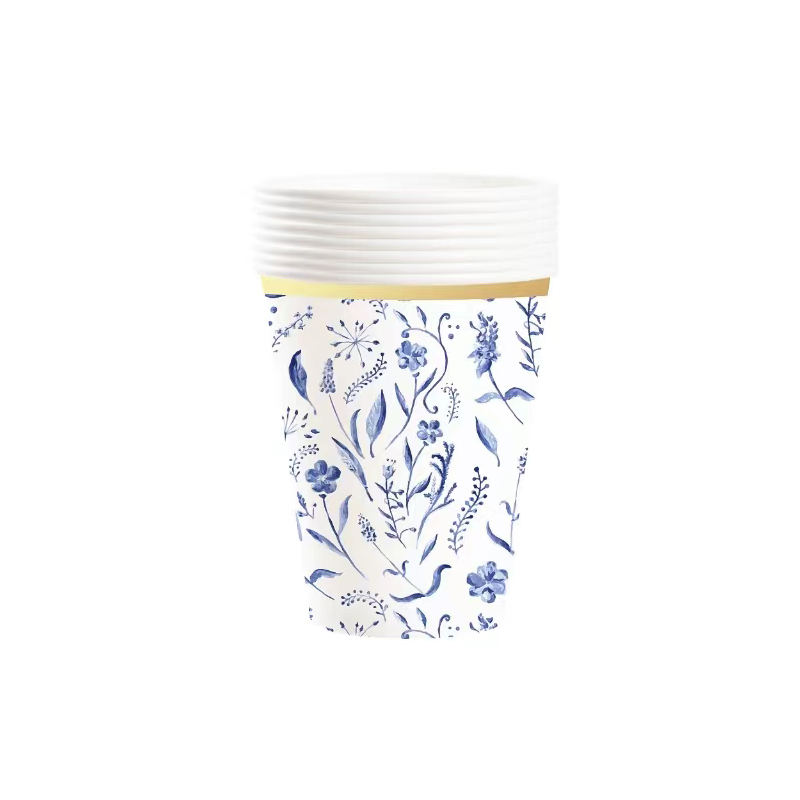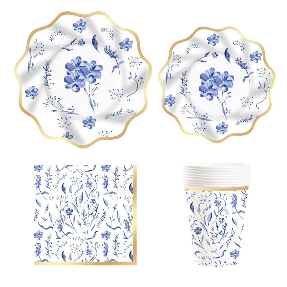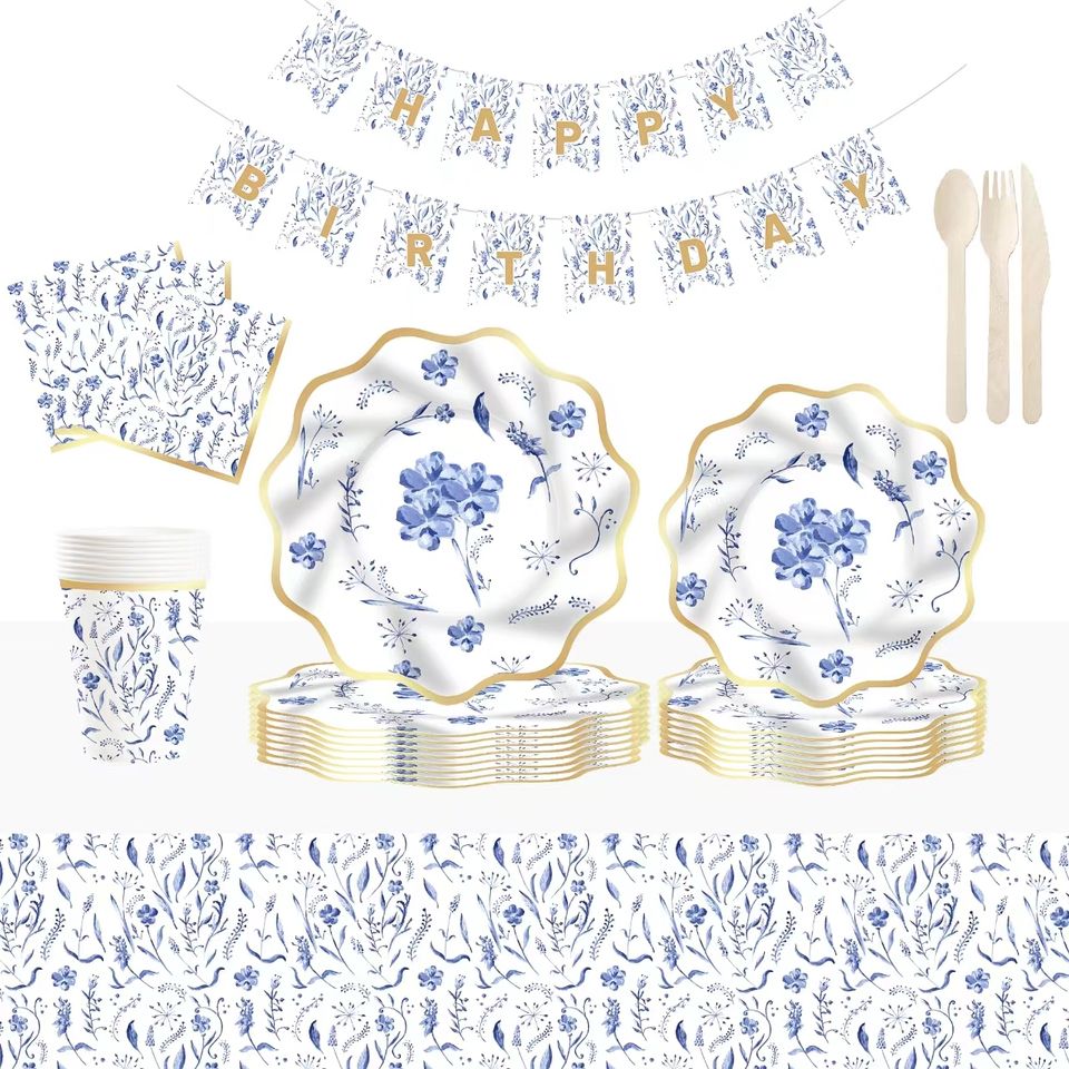 ชุดอุปกรณ์จัดเลี้ยงธีมดอกไม้สีฟ้า DAMAI ชุดจานกระดาษลายปั๊มร้อนสำหรับงานเลี้ยงน้ำชา พร้อมผ้าเช็ดปาก แก้ว และชุดภาชนะสำหรับรับประทานอาหาร