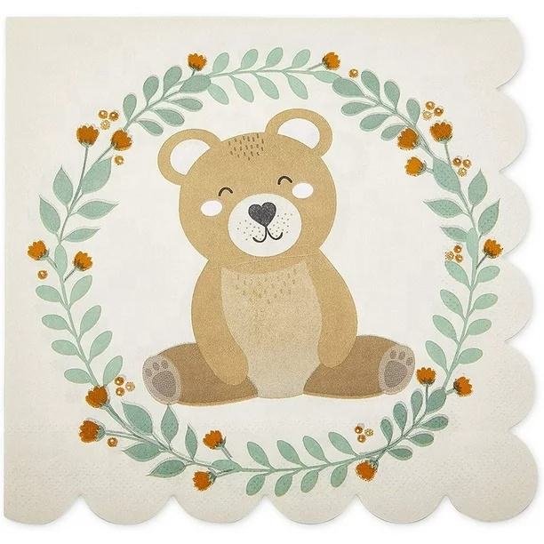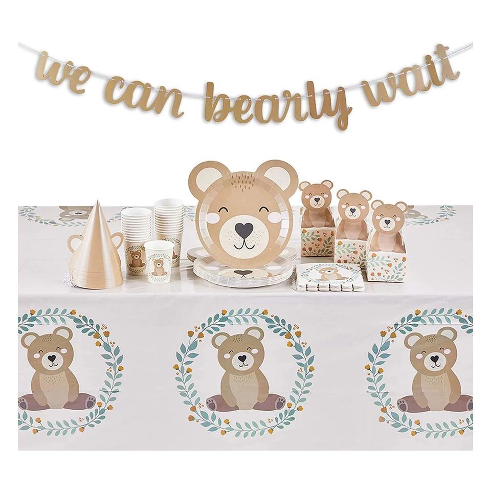 จานกระดาษลายหมีสีน้ำตาล DAMAI ชุดอุปกรณ์จัดงานเลี้ยงสำหรับเด็ก ชุดอุปกรณ์บนโต๊ะอาหารสำหรับงานเลี้ยงเด็ก