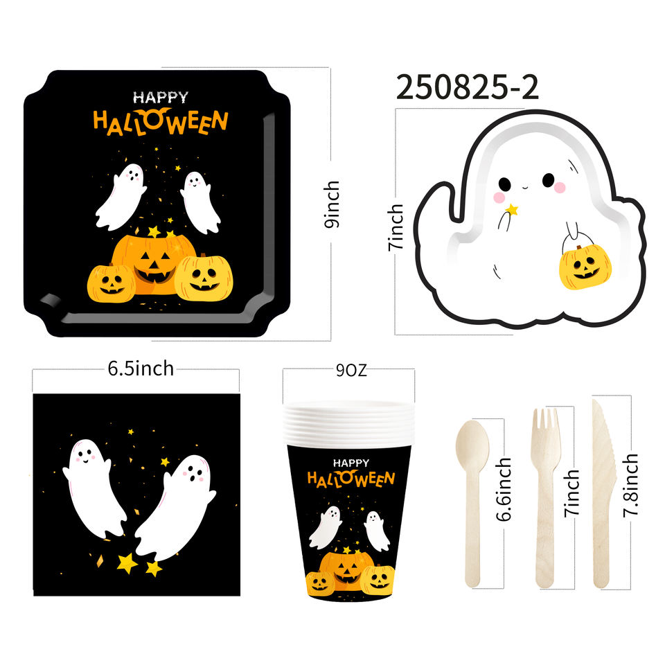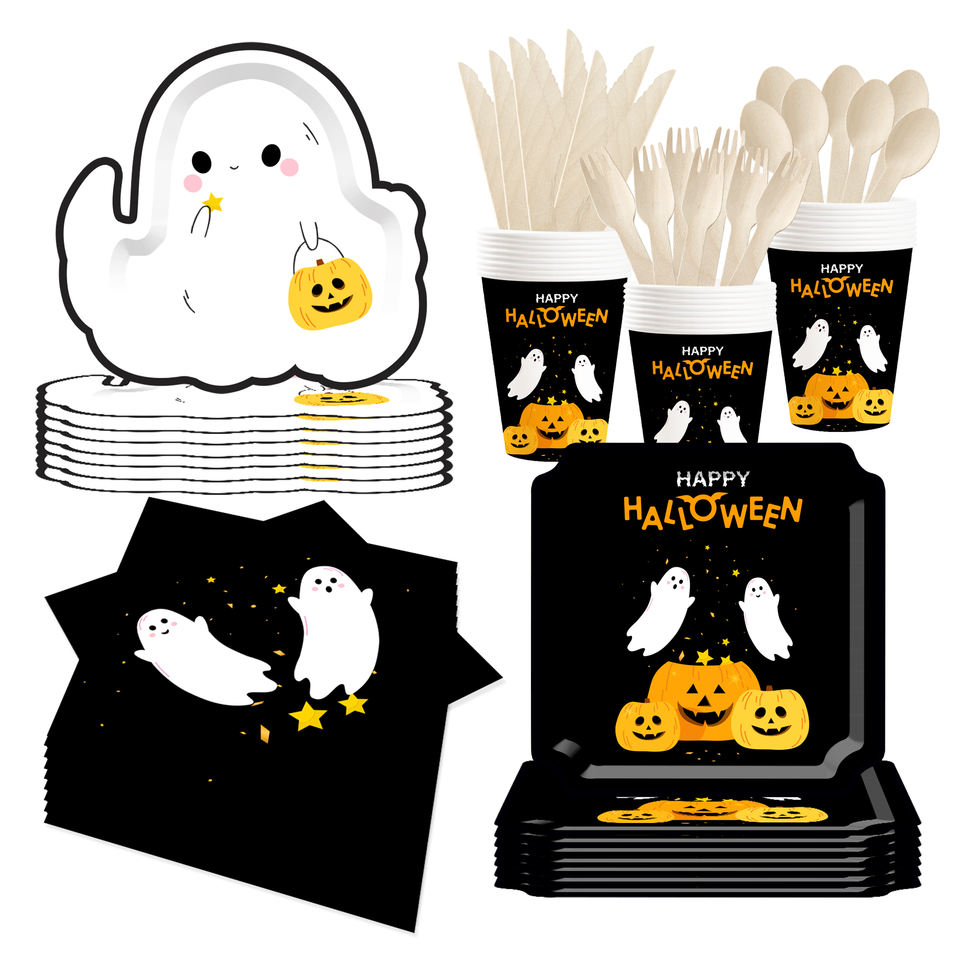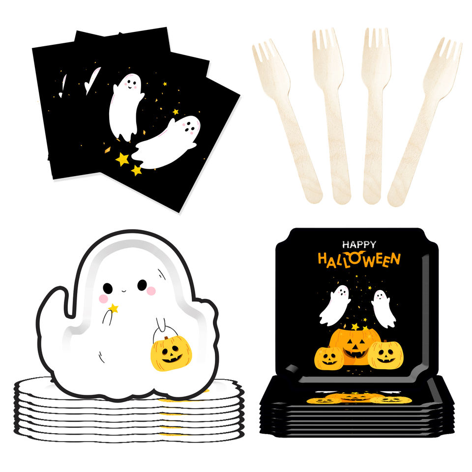 Customized Halloween Theme Little Ghost Paper Tableware Set
