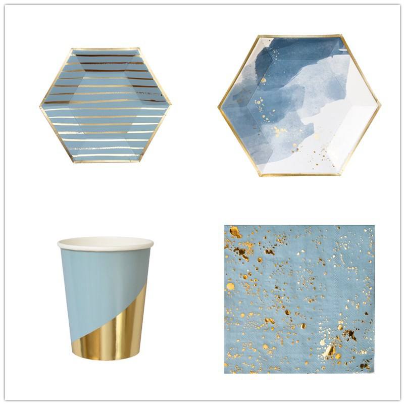 ชุดอุปกรณ์จัดงานเลี้ยงแบบใช้แล้วทิ้ง DAMAI สีฟ้า ประกอบด้วยจาน ถ้วย และผ้าเช็ดปาก สำหรับงานวันเกิด