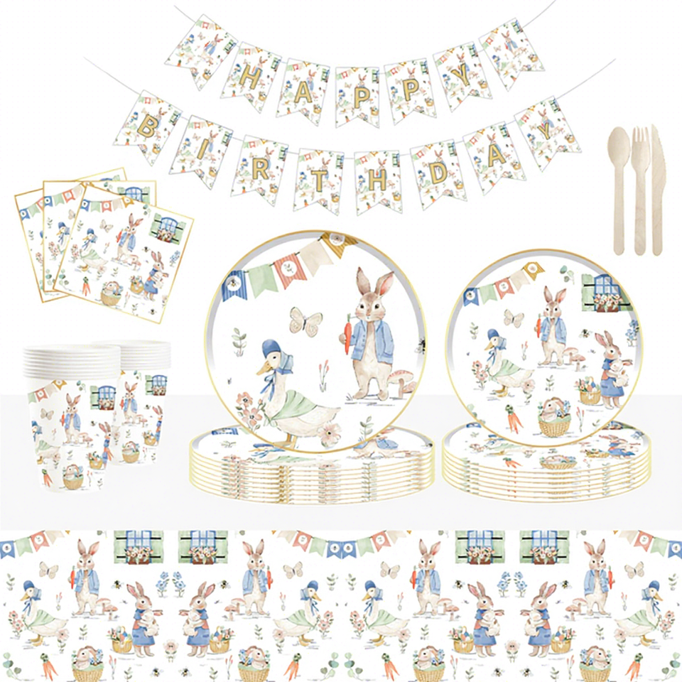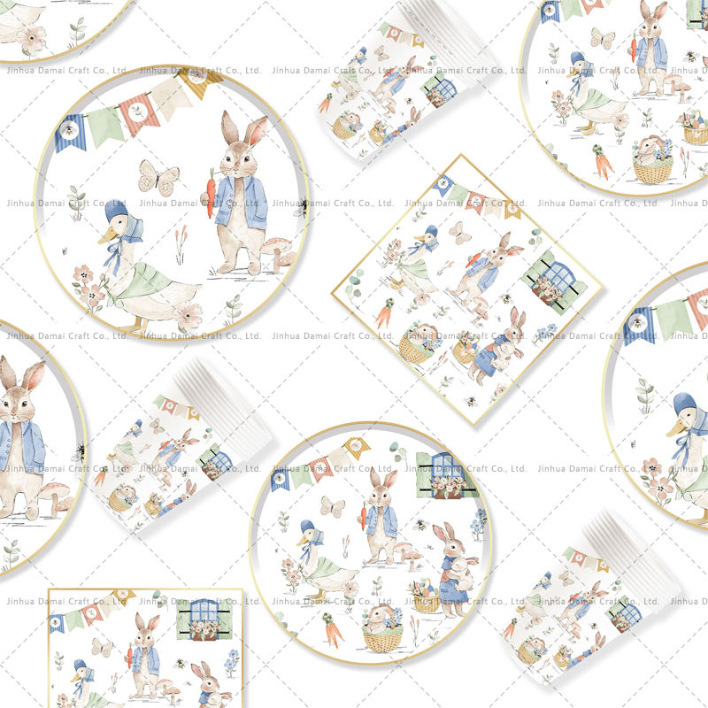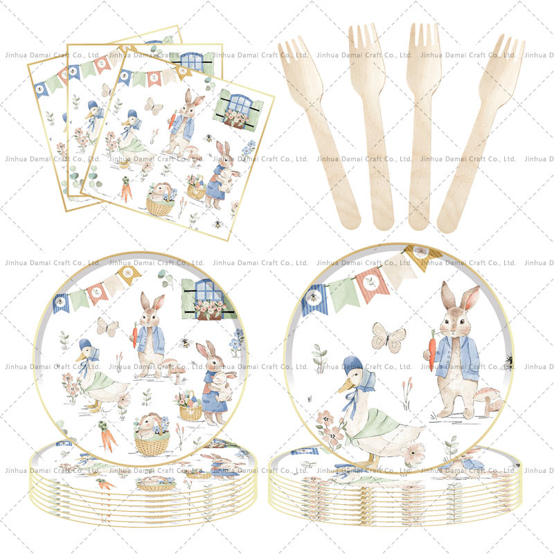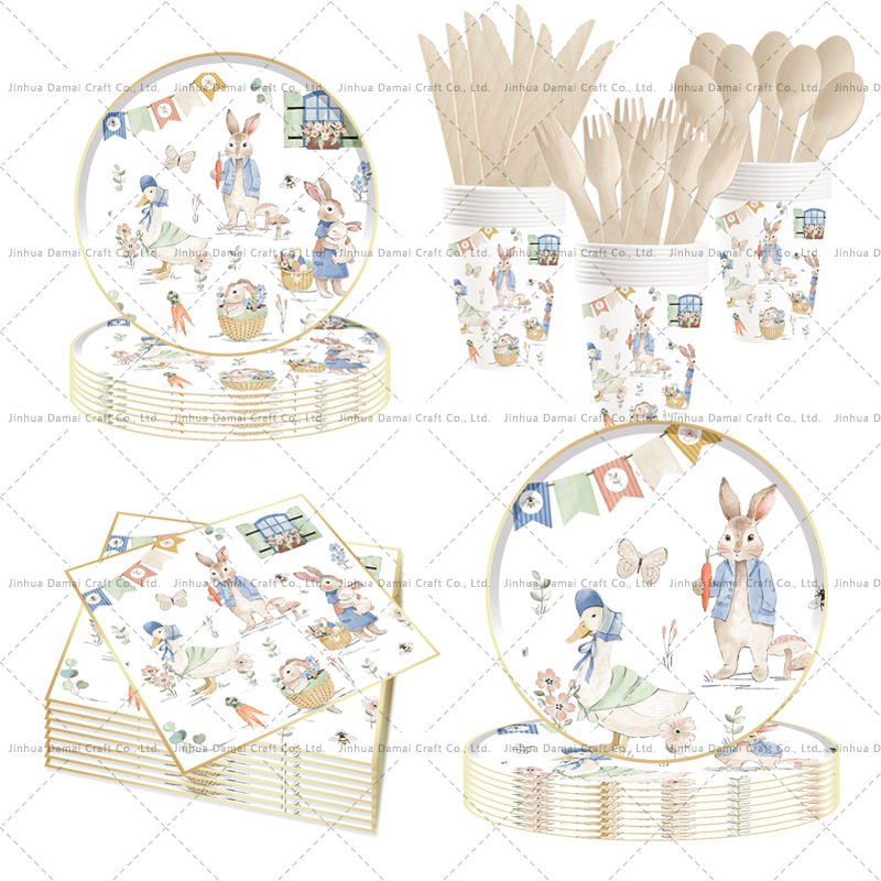 ชุดอุปกรณ์บนโต๊ะอาหารวันอีสเตอร์ DAMAI ของตกแต่งปาร์ตี้ กระต่าย ชุดจานกระดาษแบบใช้แล้วทิ้ง สำหรับงานเฉลิมฉลองฤดูใบไม้ผลิ ของชำร่วยปิกนิก 4 ชิ้น