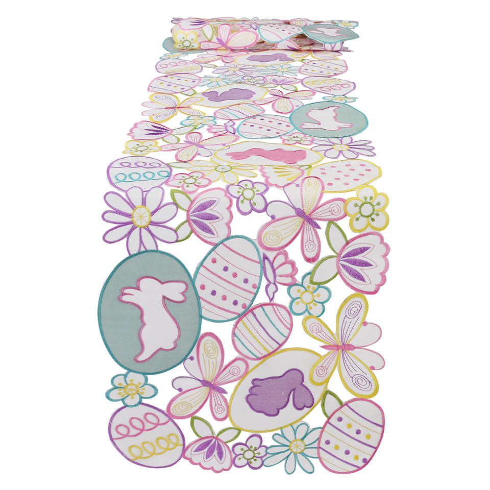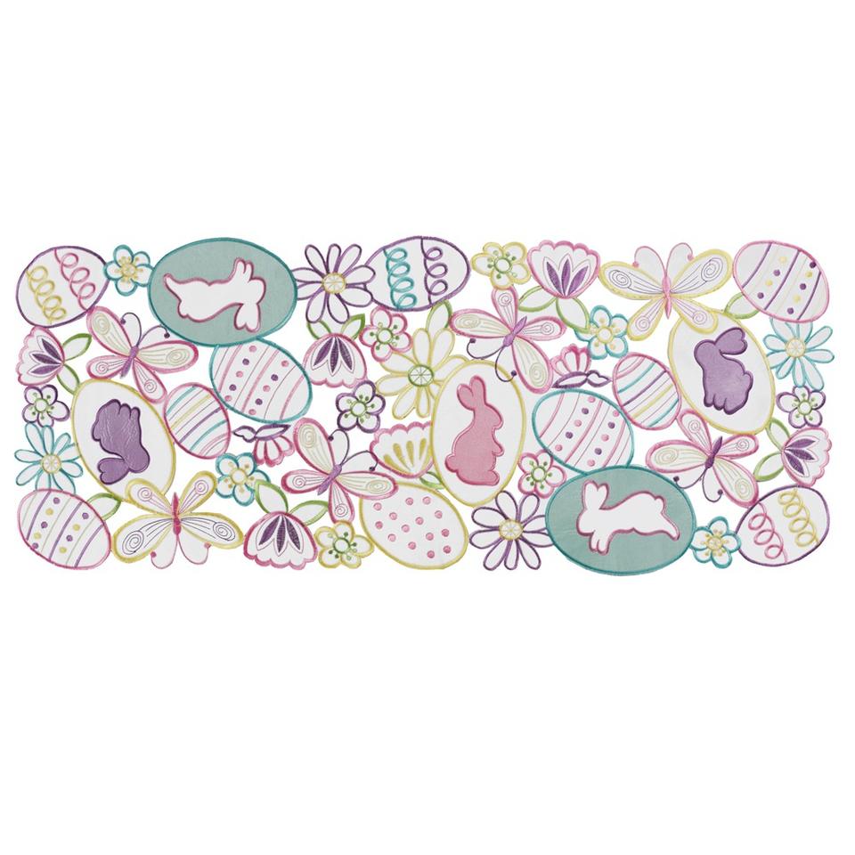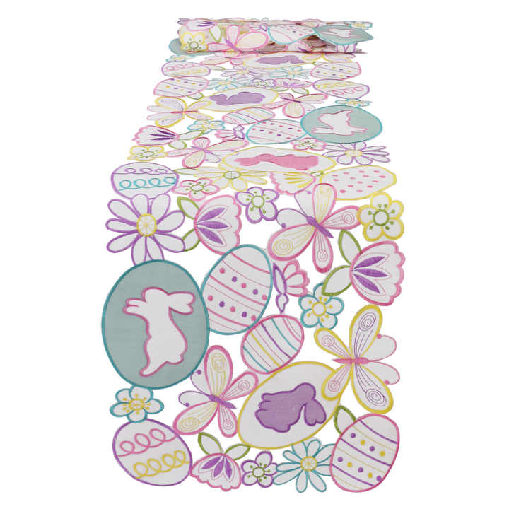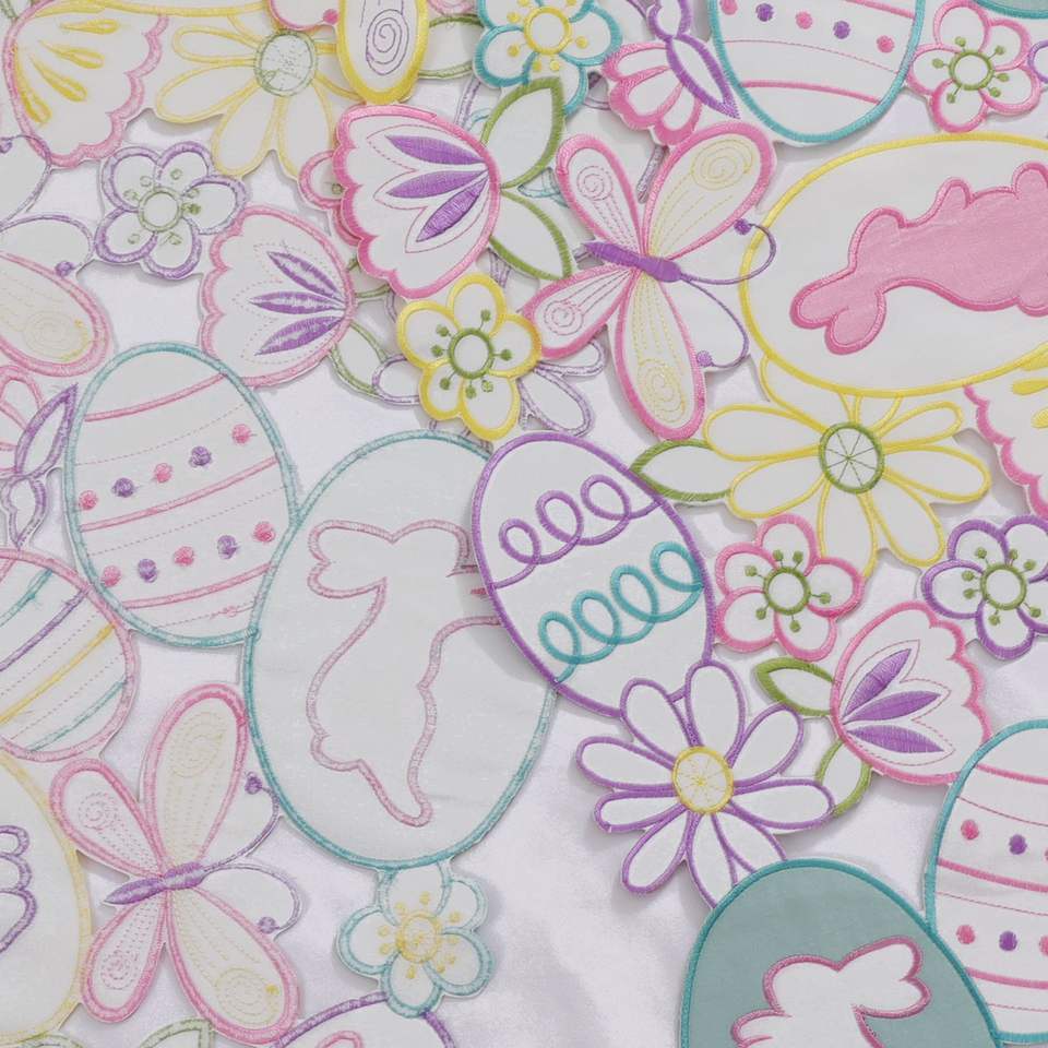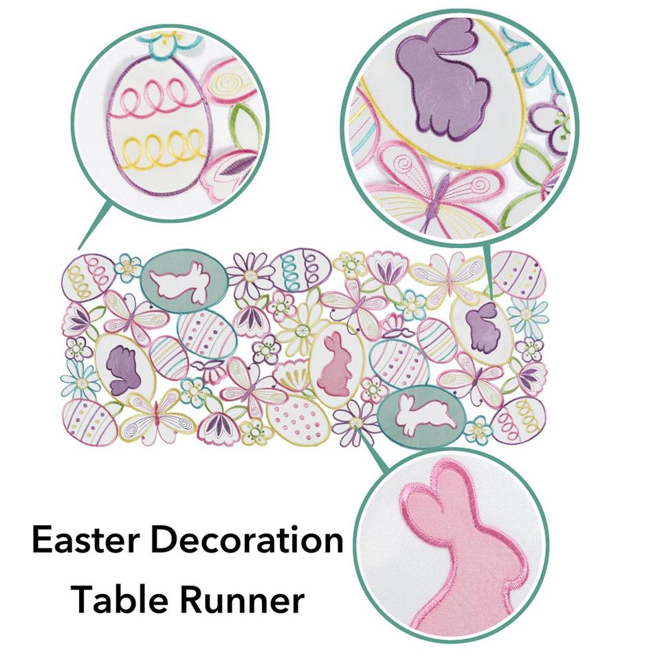 ผ้าปูโต๊ะตกแต่งเทศกาลอีสเตอร์ DAMAI พร้อมลายปักกระต่าย ไข่หลากสี และผีเสื้อ ของตกแต่งโต๊ะสำหรับวันหยุดฤดูใบไม้ผลิ
