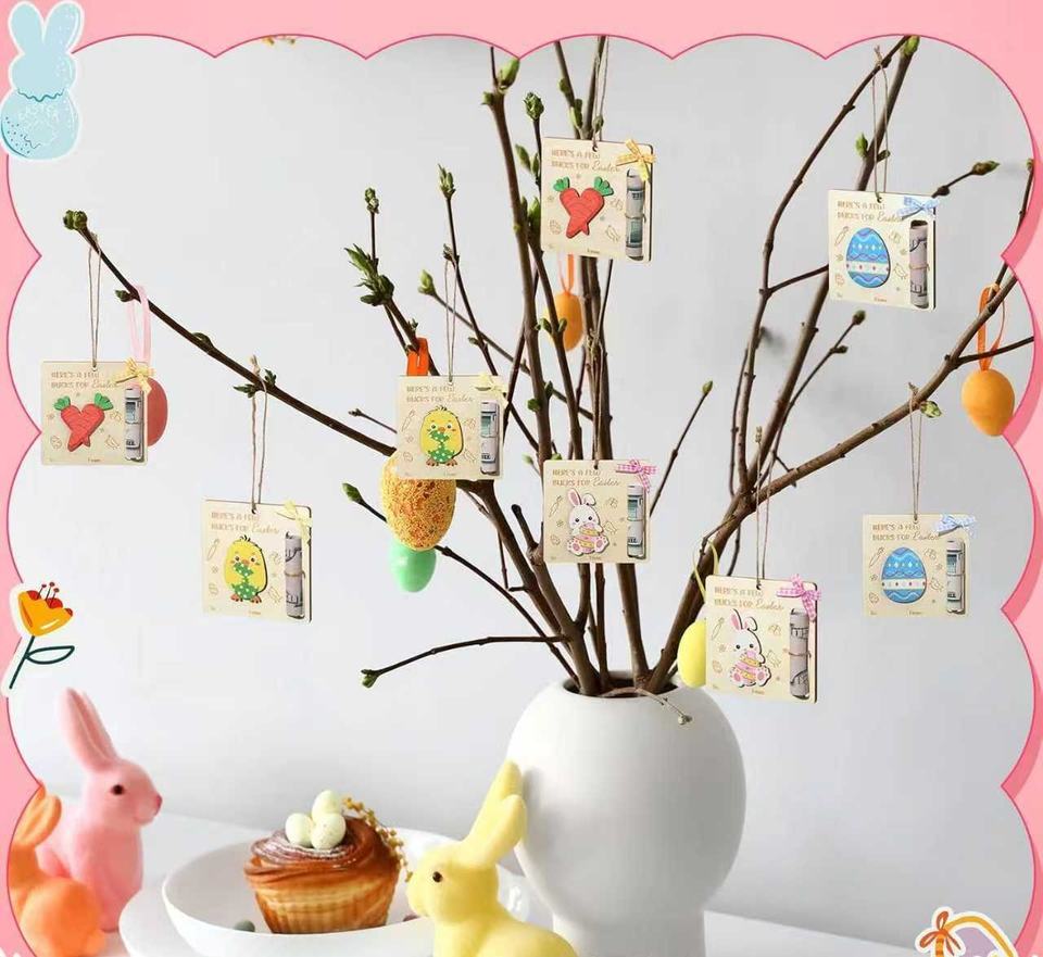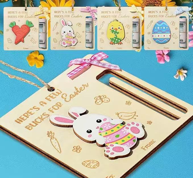 ที่ใส่เงินอีสเตอร์ DAMAI ของขวัญอีสเตอร์ ที่ใส่เงินไม้ ของตกแต่งการ์ด ของขวัญวันหยุด ของตกแต่งรูปกระต่ายแสนสนุก สำหรับเทศกาลวันหยุด