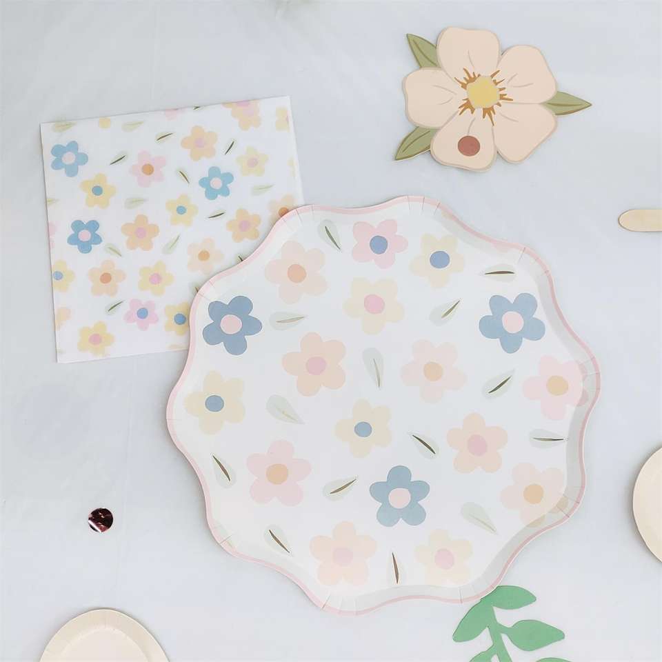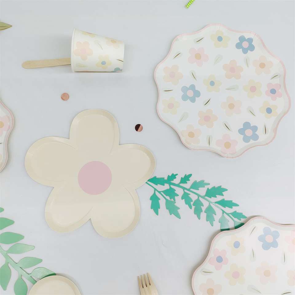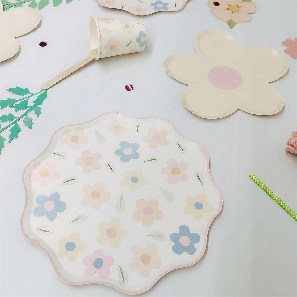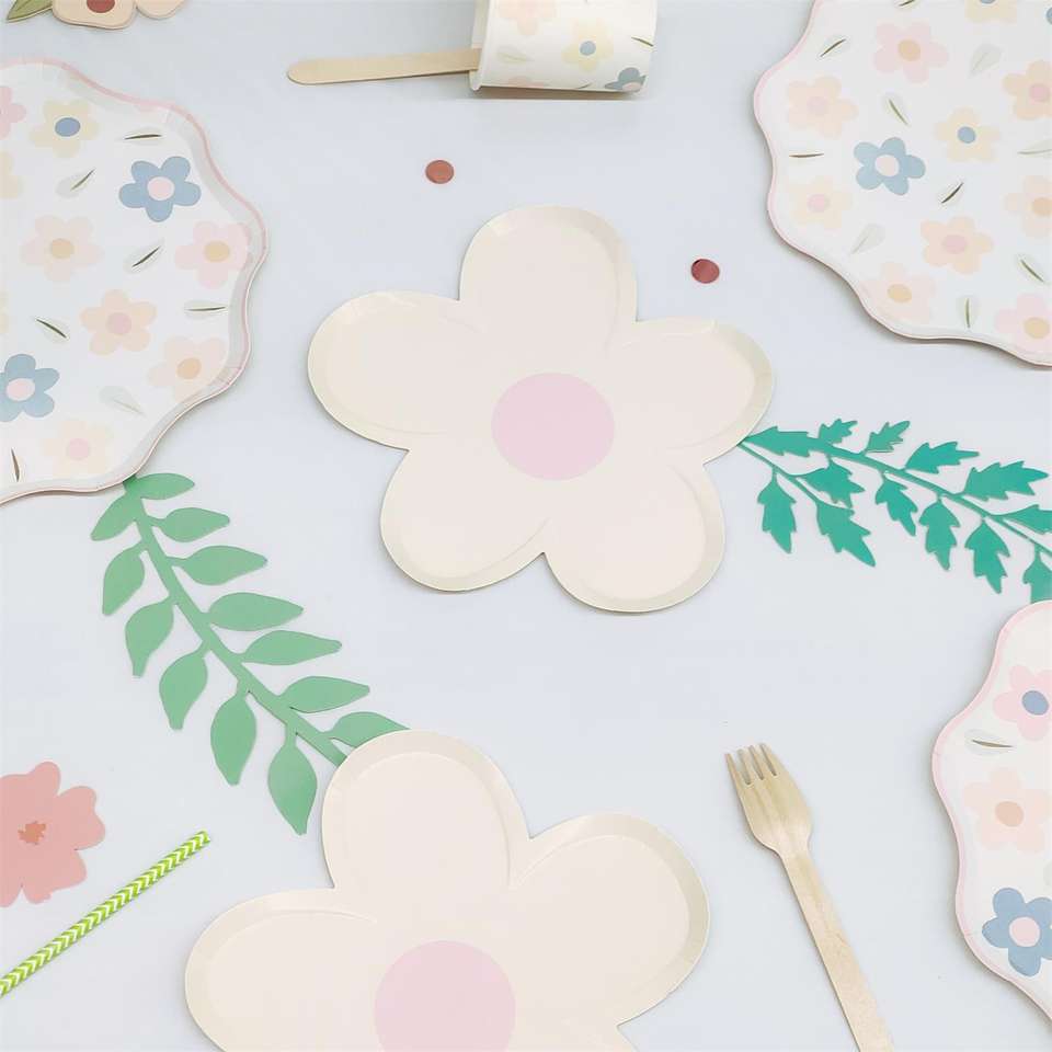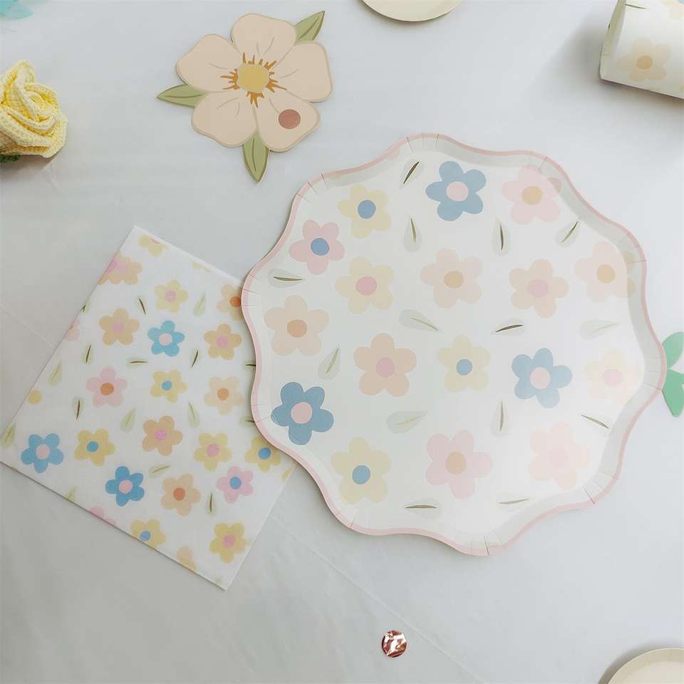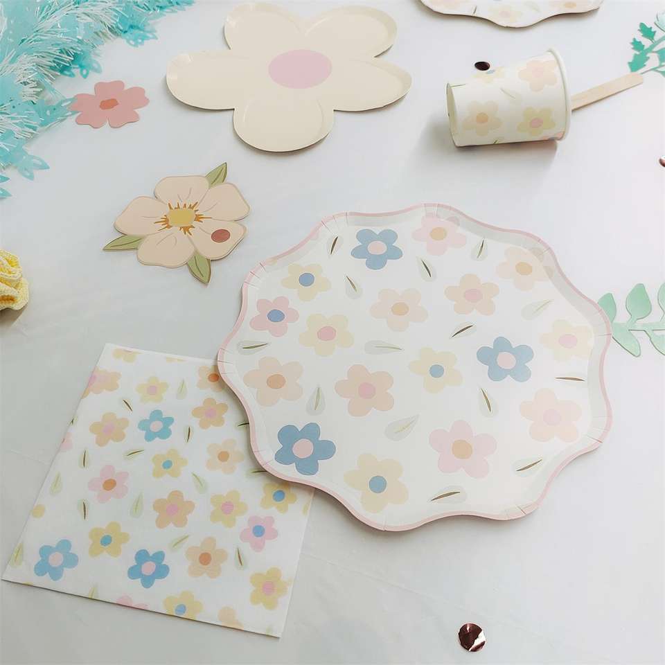 ชุดอุปกรณ์จัดงานเลี้ยงน้ำชาฤดูใบไม้ผลิและฤดูร้อน DAMAI รูปทรงดอกไม้ พรีเมียม แบบใช้แล้วทิ้ง ประกอบด้วย ถ้วยกระดาษ ผ้าเช็ดปาก จาน