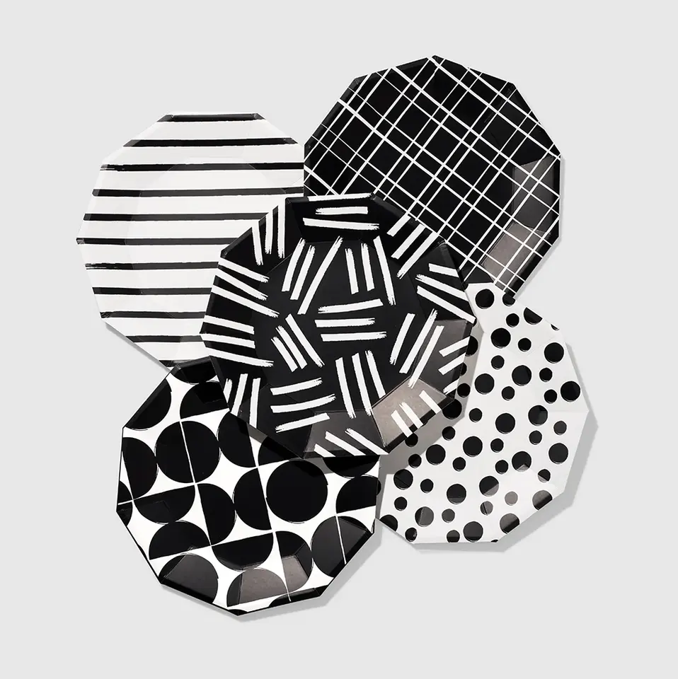 ชื่อผลิตภัณฑ์:จานกระดาษรูปสิบเหลี่ยมลายเรขาคณิต