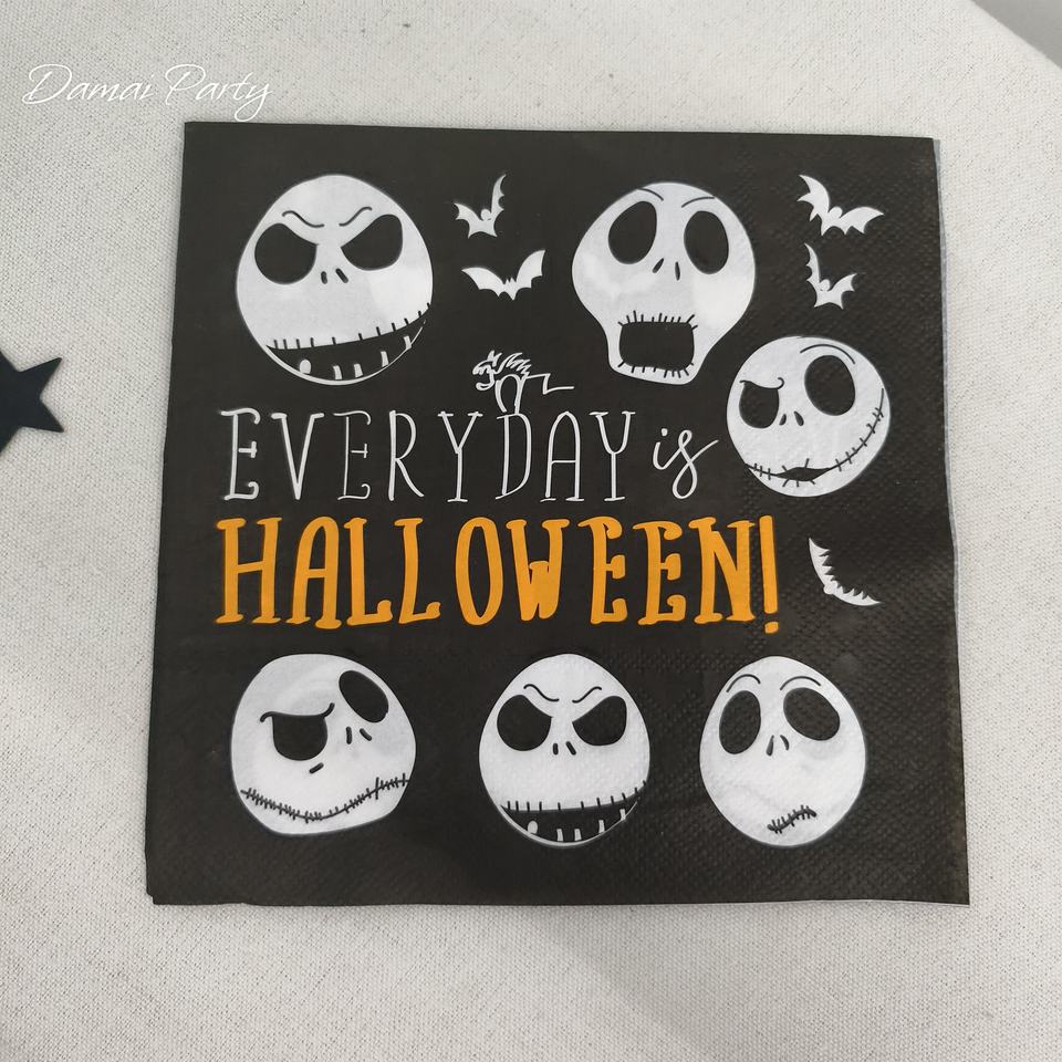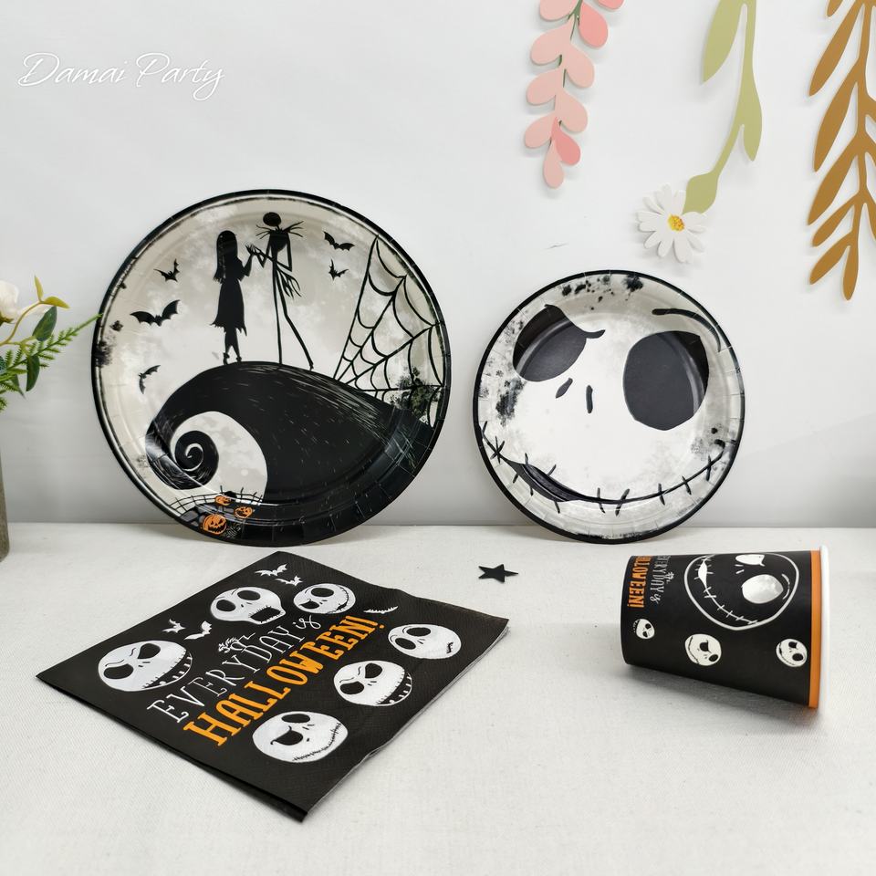 ชุดตกแต่งปาร์ตี้ฮาโลวีน DAMAI สไตล์ดาร์กสยองขวัญ ลายหัวกะโหลกพร้อมจานลายค้างคาว ชุดจานชามกระดาษแบบใช้แล้วทิ้ง ถ้วย จานกระดาษ ผ้าเช็ดปาก