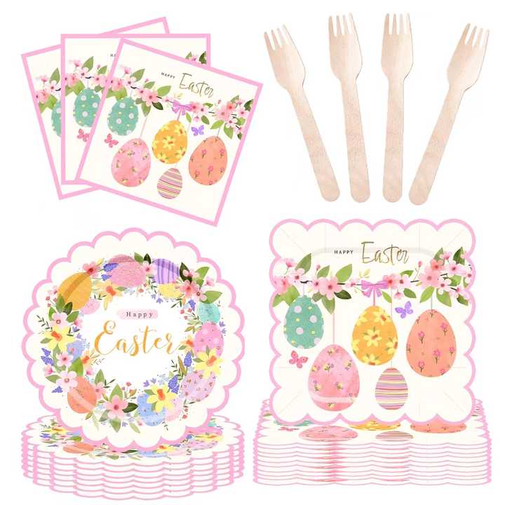 ชุดอุปกรณ์ตกแต่งงานเลี้ยงอีสเตอร์ DAMAI ประกอบด้วยดอกไม้ ไข่ จานกระดาษ ผ้าเช็ดปาก ชุดจานชามแบบใช้แล้วทิ้ง ขายส่ง