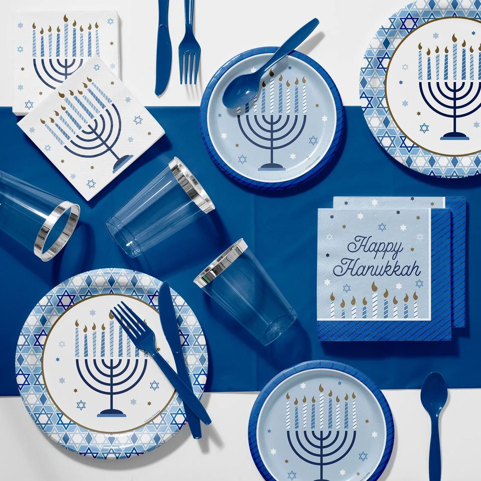 Damai Happy Hanukkah ชุดจานกระดาษชุดเครื่องใช้บนโต๊ะอาหารแบบใช้แล้วทิ้งสีน้ำเงิน