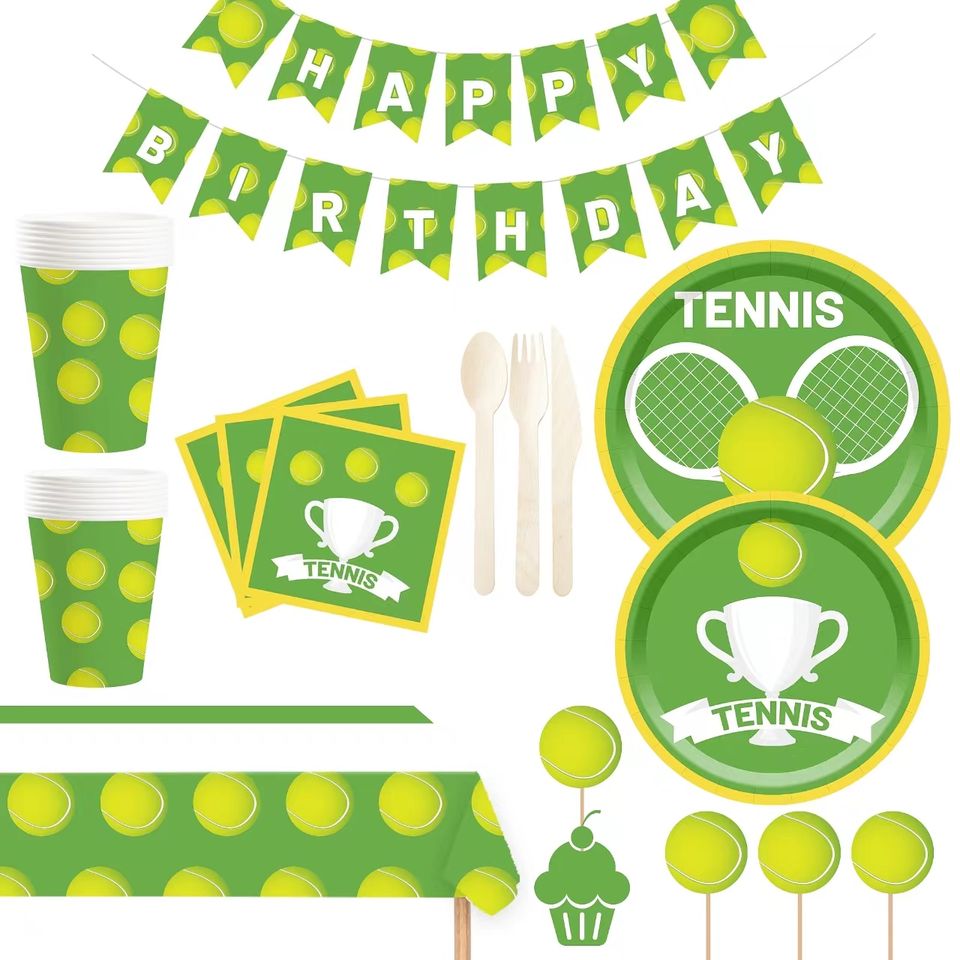 ชุดจานกระดาษ ผ้าเช็ดปาก และอุปกรณ์จัดเลี้ยงธีมเทนนิส DAMAI ขายดี สำหรับ 10 ท่าน
