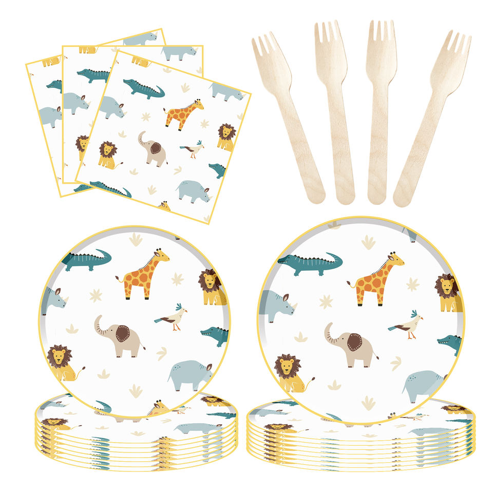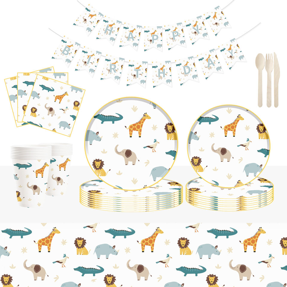 ชุดตกแต่งธีมป่าดงดิบ ซาฟารี สัตว์ป่า สำหรับงานวันเกิดเด็ก ชุดจานชามแบบใช้แล้วทิ้ง