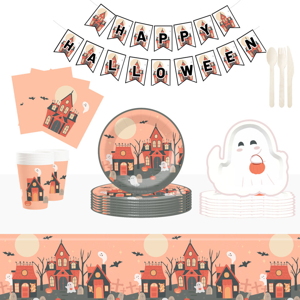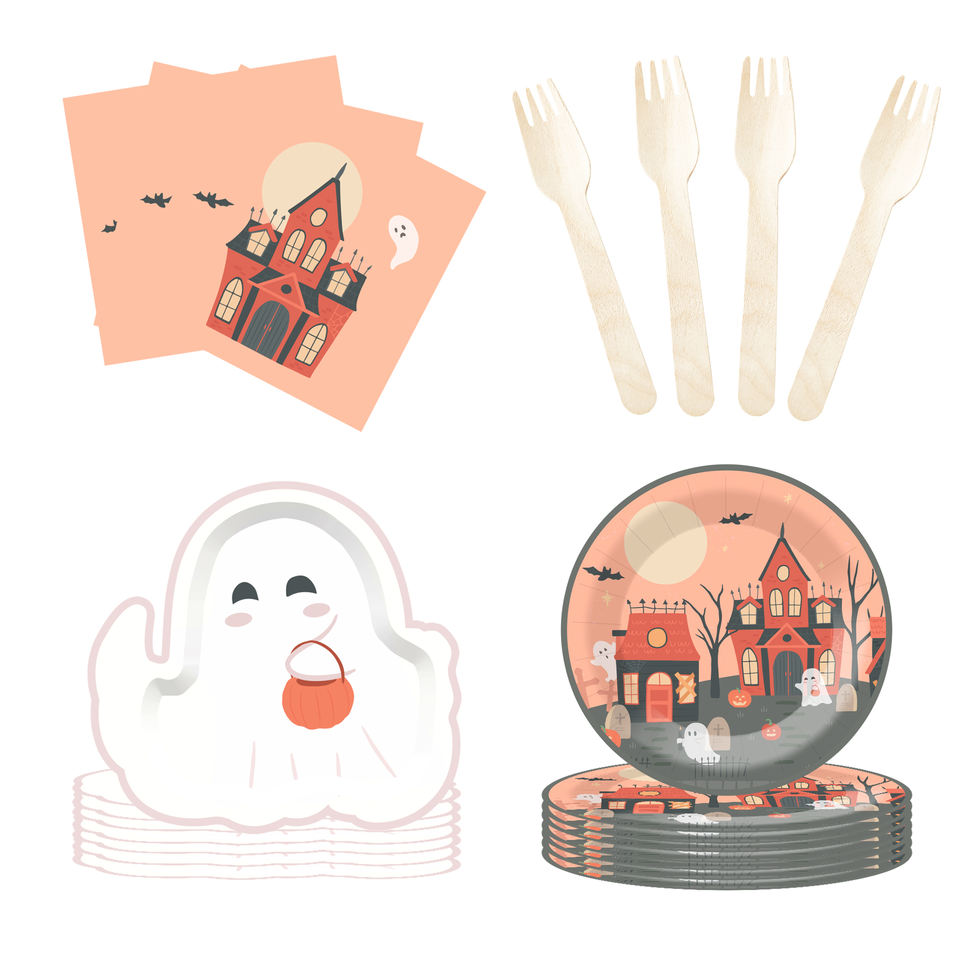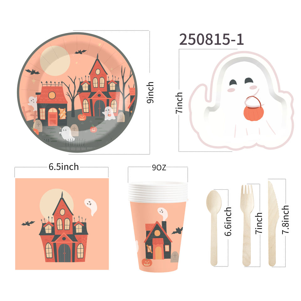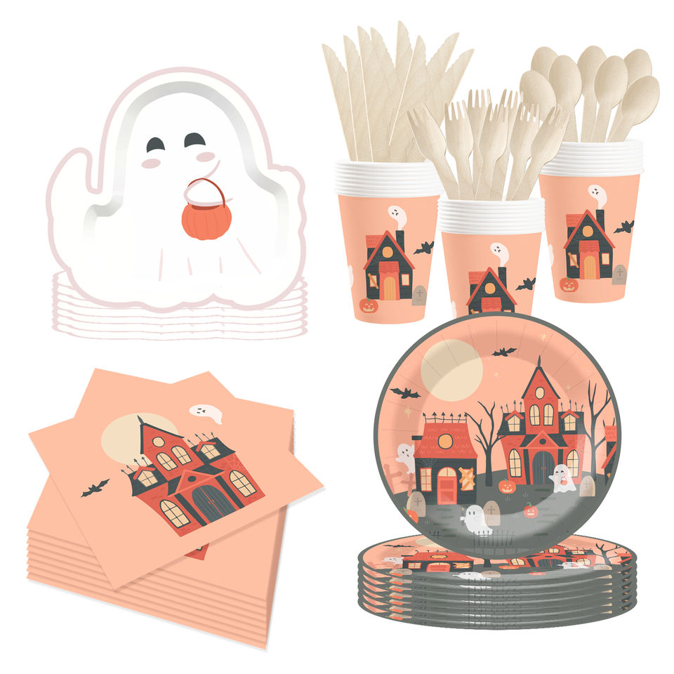 DAMAI New Ghost One-Time Use Theme Paper Plates, Cups and Napkins for Halloween Party Supply