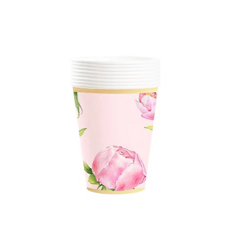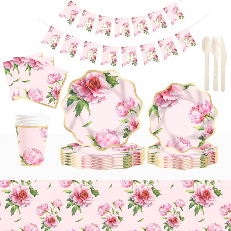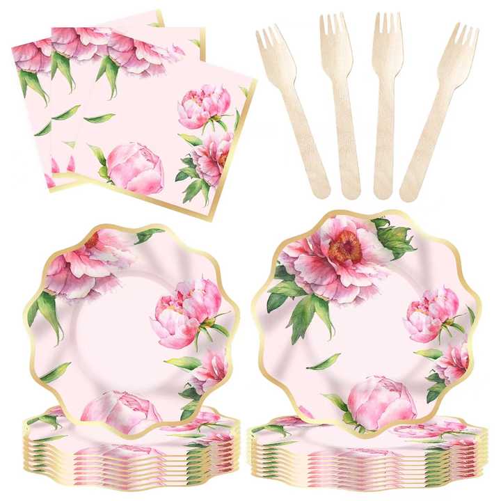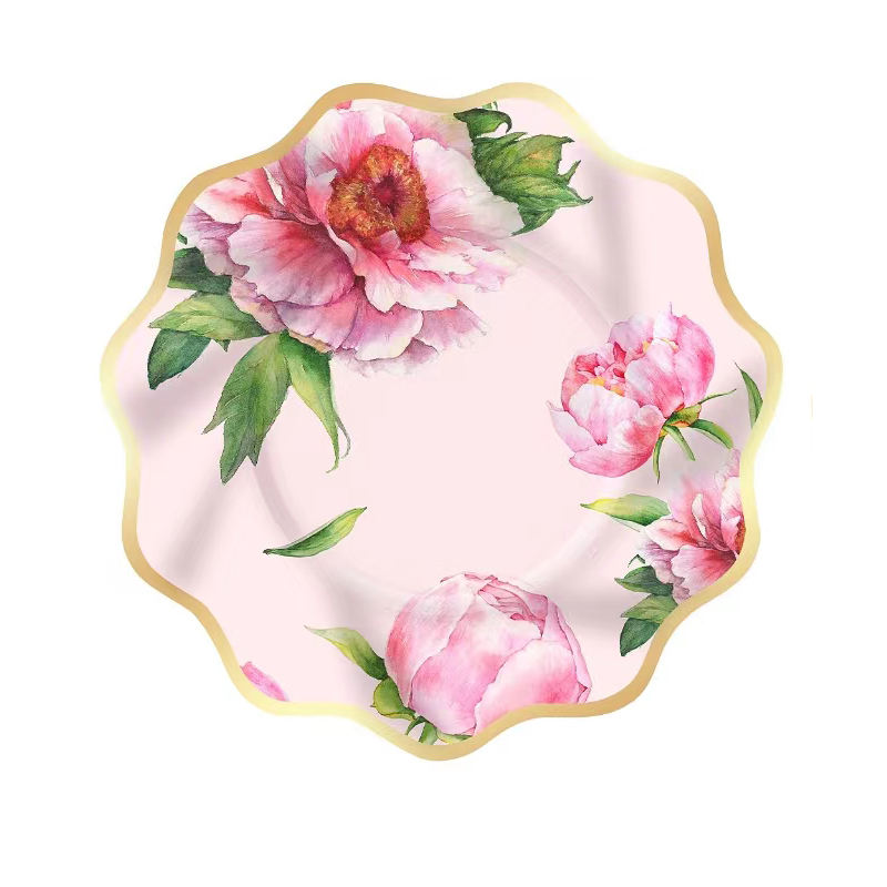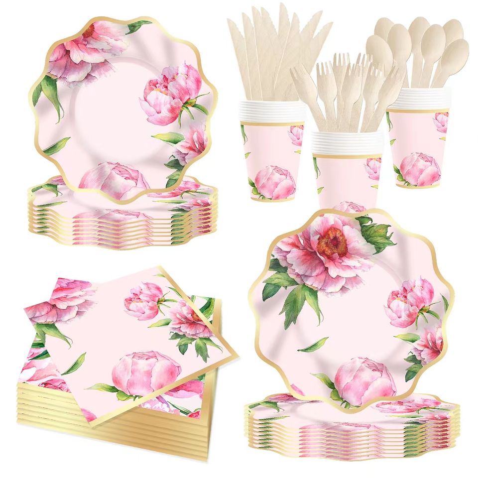 ชุดจานชามกระดาษลายดอกไม้ DAMAI สำหรับงานเลี้ยง จานกระดาษแบบใช้แล้วทิ้ง ผ้าเช็ดปาก ชุดจานลายคลื่น อุปกรณ์จัดงานวันเกิด