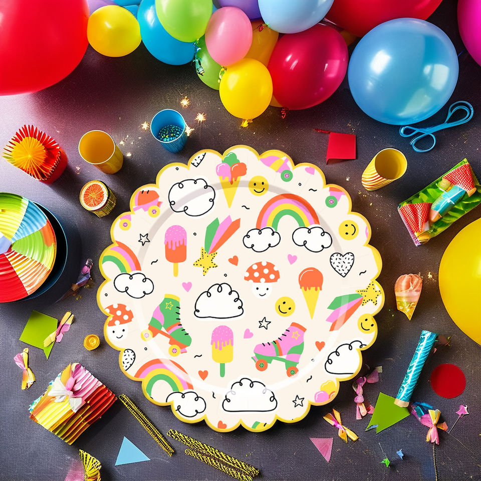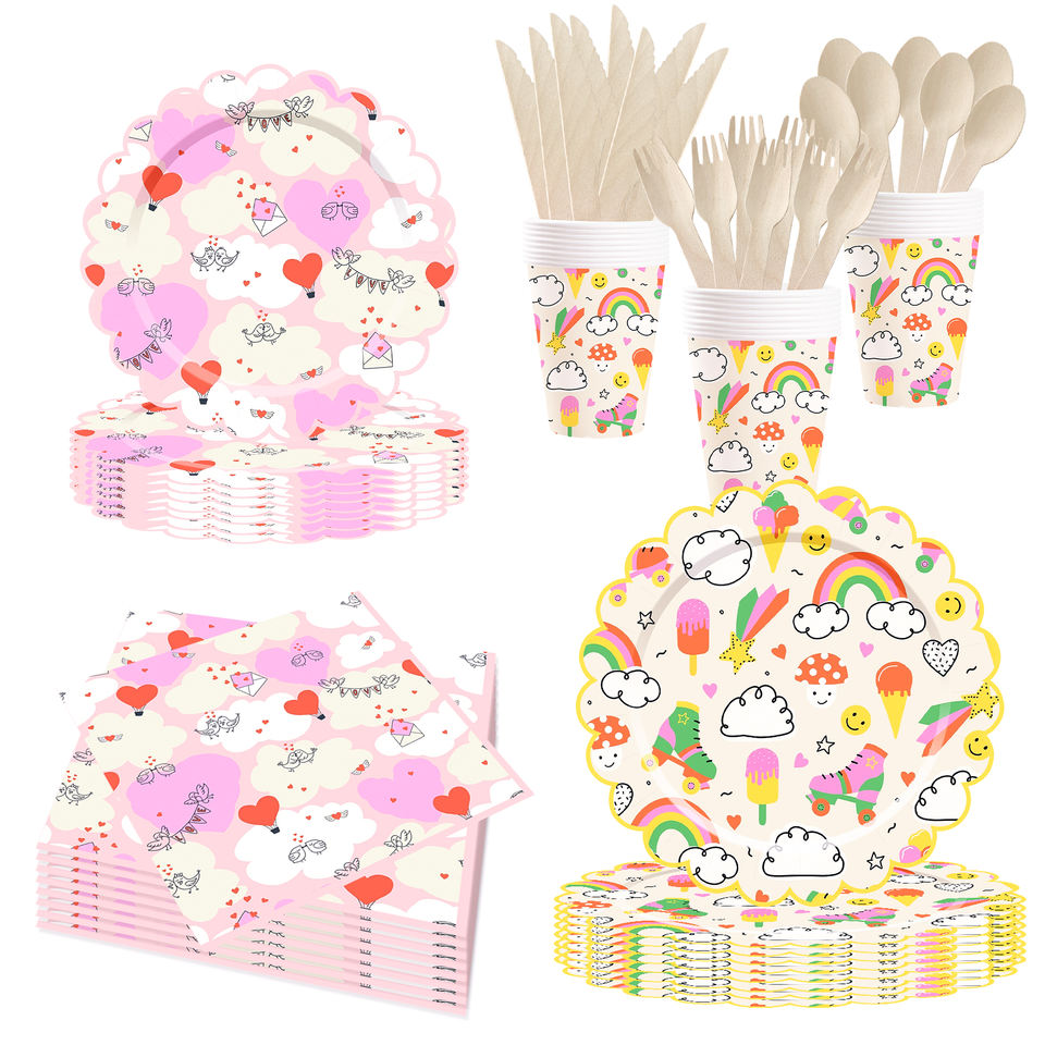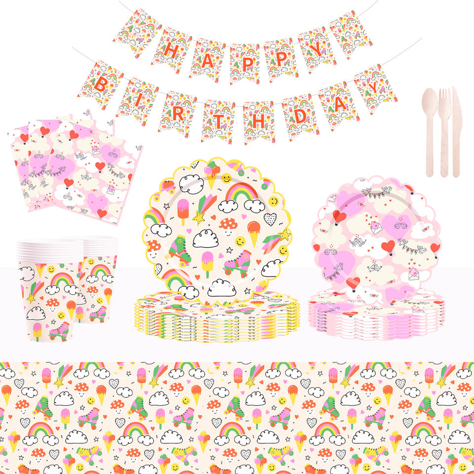 ชุดอุปกรณ์จัดงานวันเกิดเด็ก DAMAI ลายสายรุ้ง เมฆ ดาว พระอาทิตย์ ชุดจาน ชาม แก้วกระดาษ ผ้าเช็ดปาก แบบใช้แล้วทิ้ง