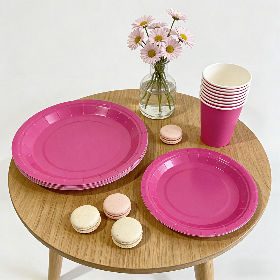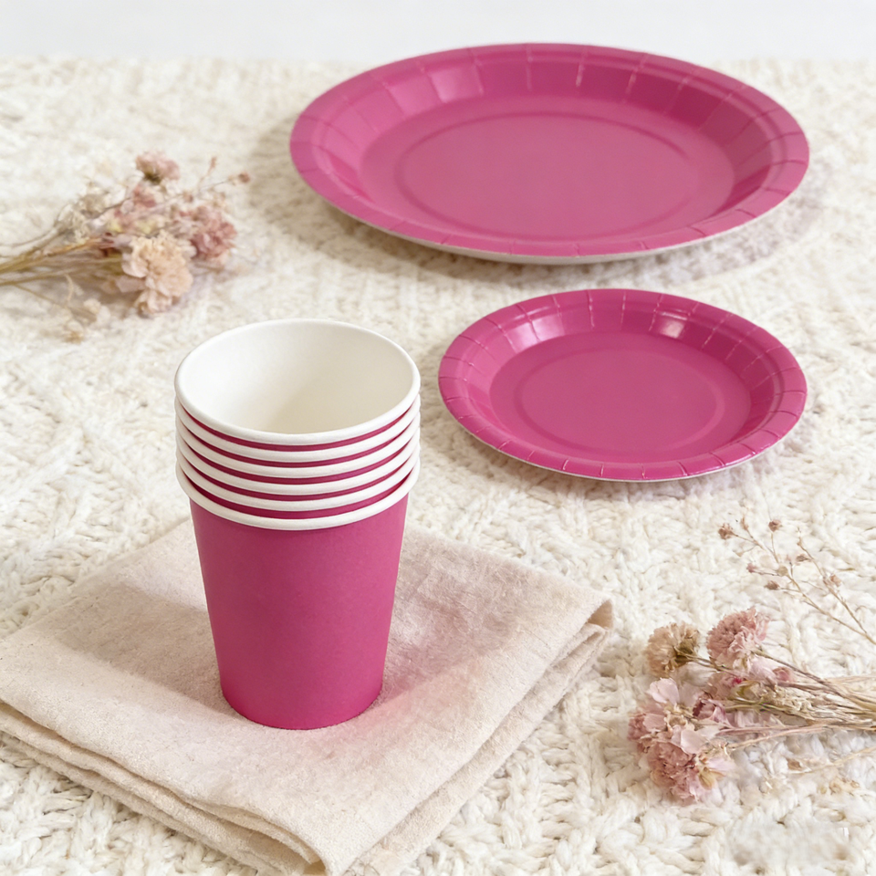 ชุดอุปกรณ์จัดงานเลี้ยงสีพื้น DAMAI ชุดจานชามกระดาษสีพื้นแบบใช้แล้วทิ้ง ขนาด 7 นิ้ว 9 นิ้ว พร้อมถ้วยกระดาษและผ้าเช็ดปาก