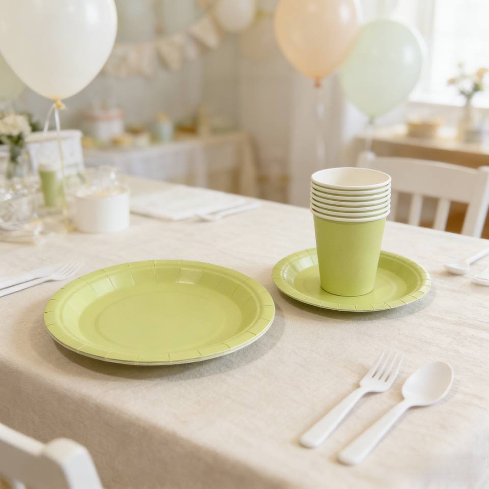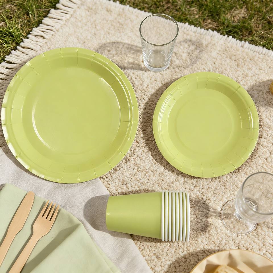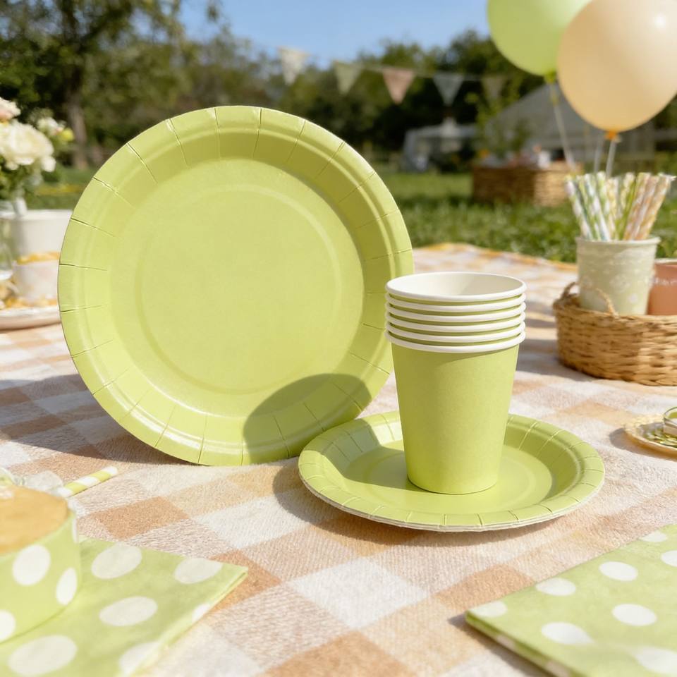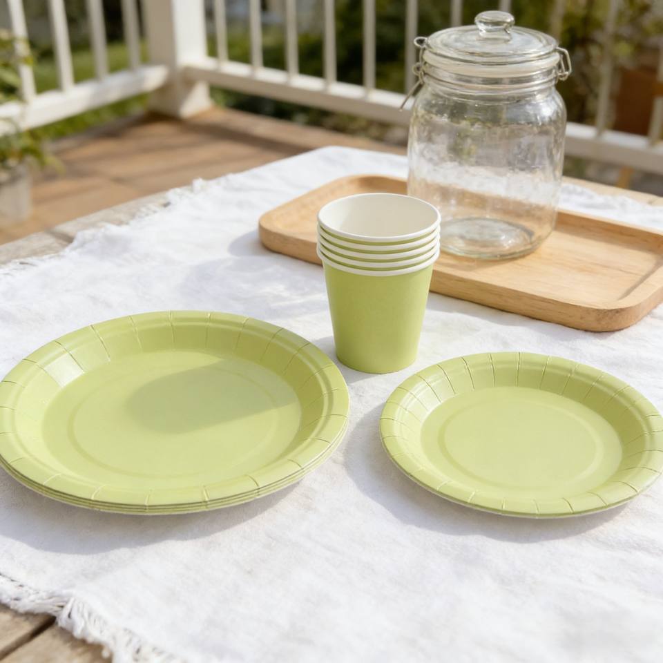 ชุดอุปกรณ์จัดงานเลี้ยงสีพื้น DAMAI ชุดจานชามกระดาษสีพื้นแบบใช้แล้วทิ้ง ขนาด 7 นิ้ว 9 นิ้ว พร้อมถ้วยกระดาษและผ้าเช็ดปาก