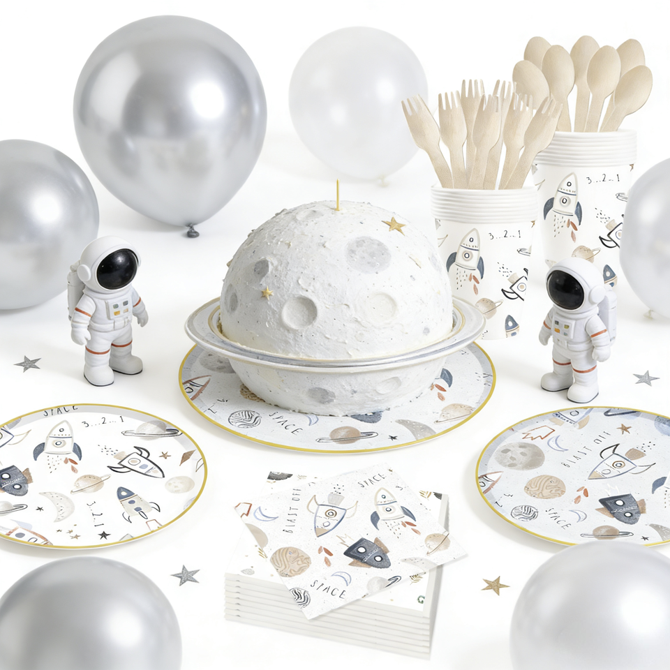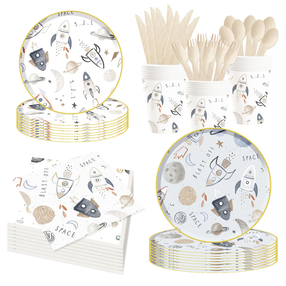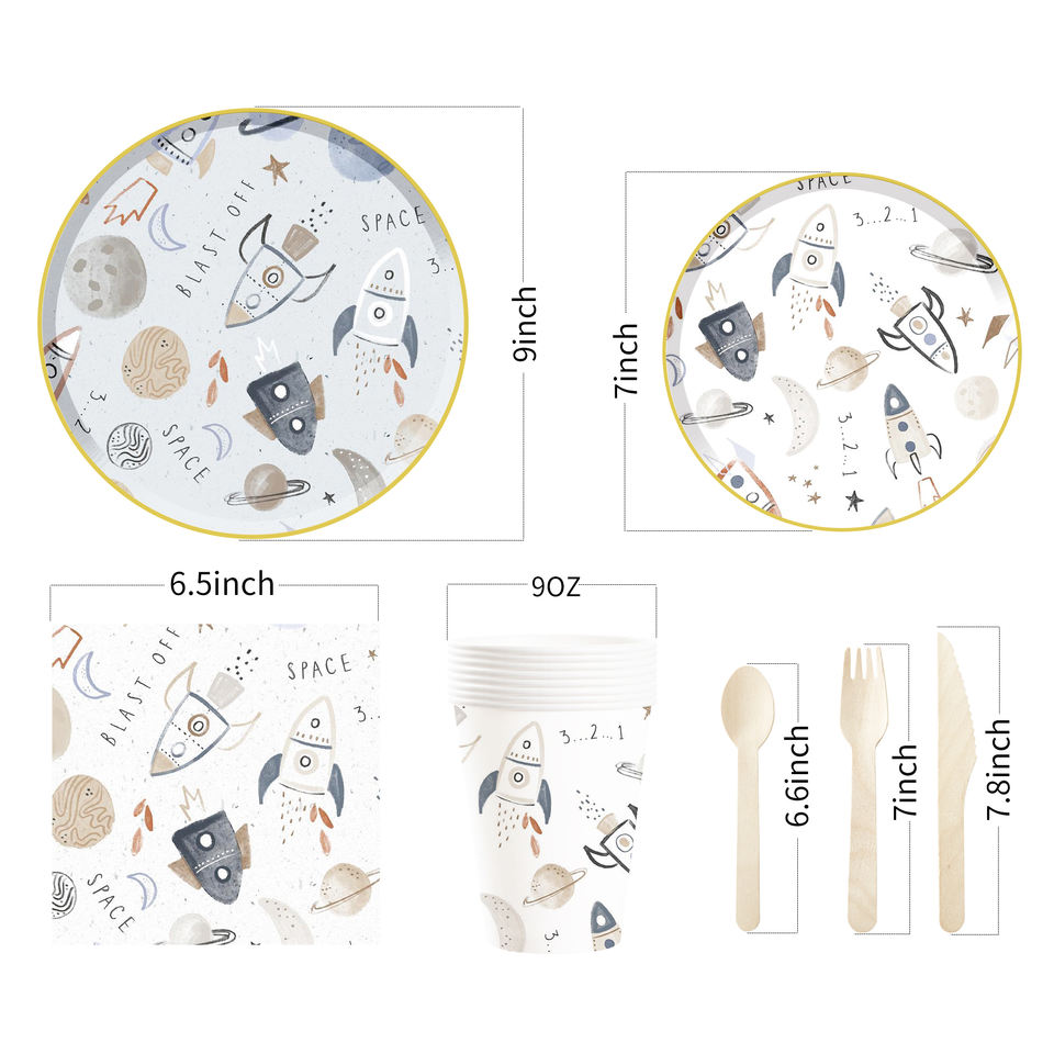 DAMAI Space Themed Kids Happy Birthday Party Supplies Moon Planet Elements Disposable Tableware Paper Napkins Cups Plates 9 Inch