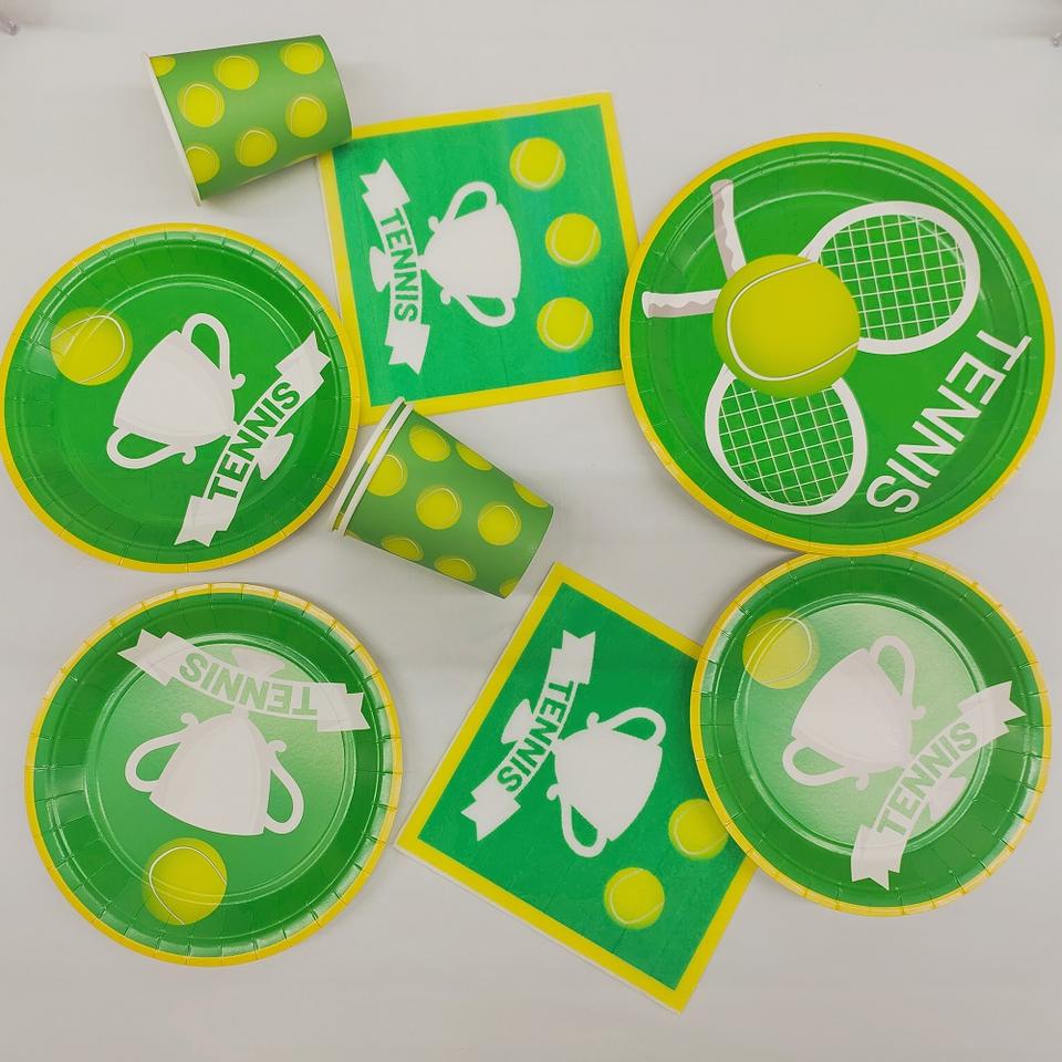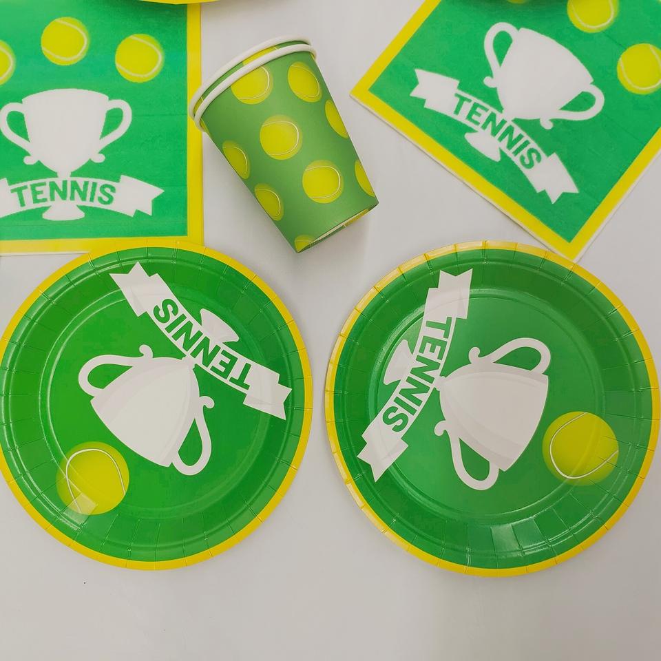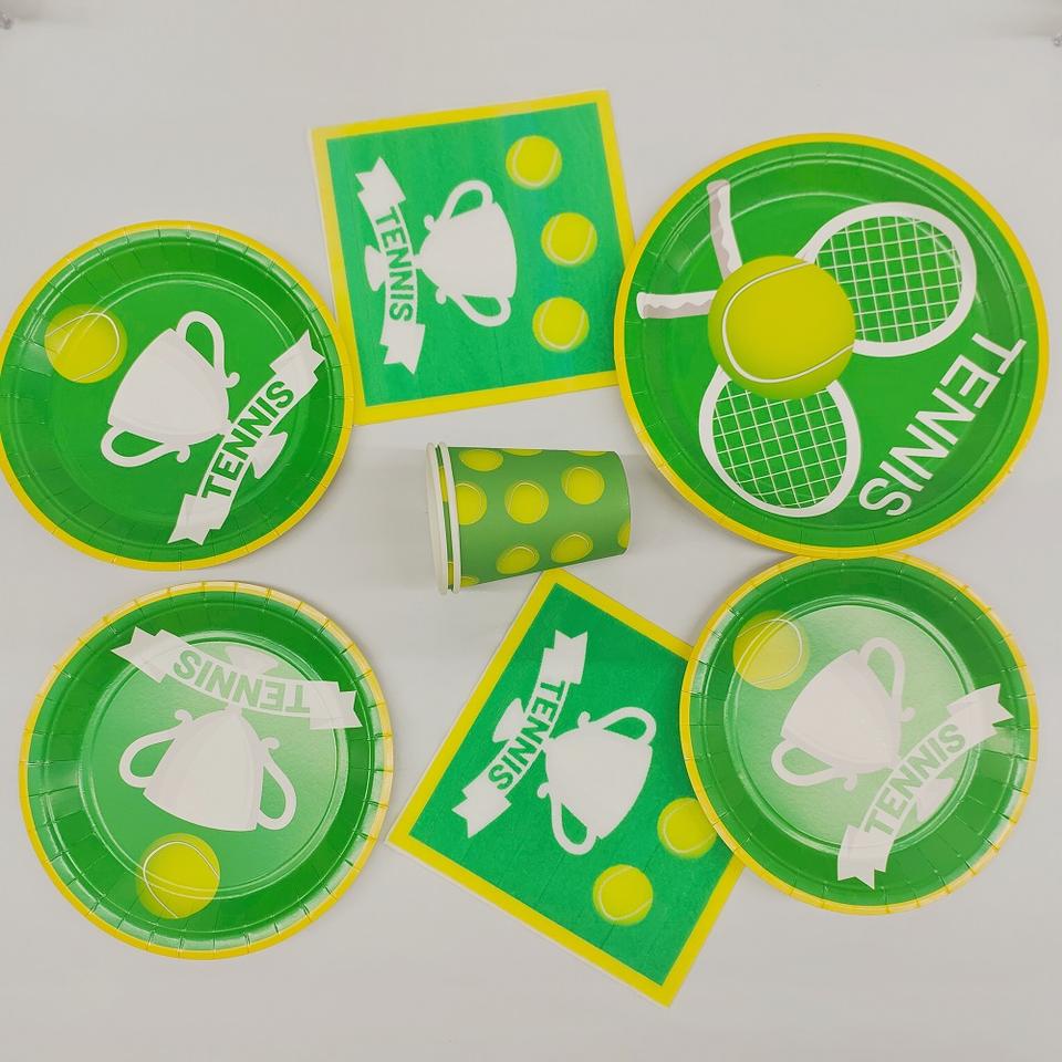 ชุดจานกระดาษลายกีฬา DAMAI สำหรับงานปาร์ตี้วันเกิดเด็ก ชุดอุปกรณ์ปาร์ตี้เทนนิส จาน ถ้วย กระดาษเช็ดปาก ภาชนะใส่อาหารแบบใช้แล้วทิ้ง