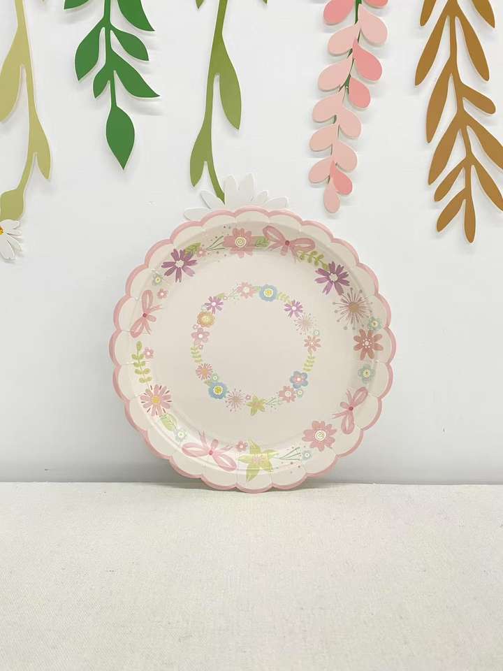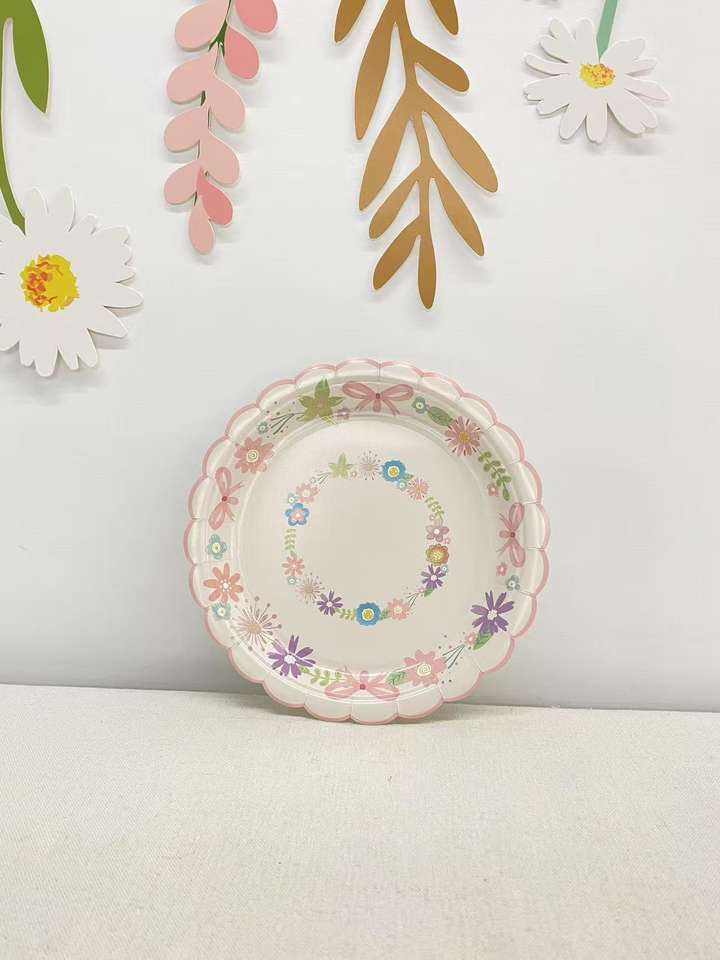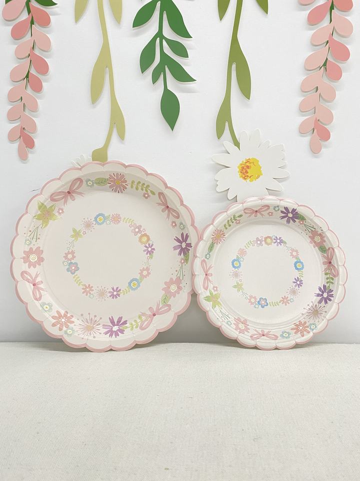 ชุดอุปกรณ์จัดเลี้ยงงานเลี้ยงน้ำชาฤดูใบไม้ผลิ DAMAI ลายดอกไม้ จานกระดาษ แก้วกระดาษ ผ้าเช็ดปาก สำหรับ 8 ท่าน สำหรับตกแต่งงานเลี้ยงฤดูใบไม้ผลิ