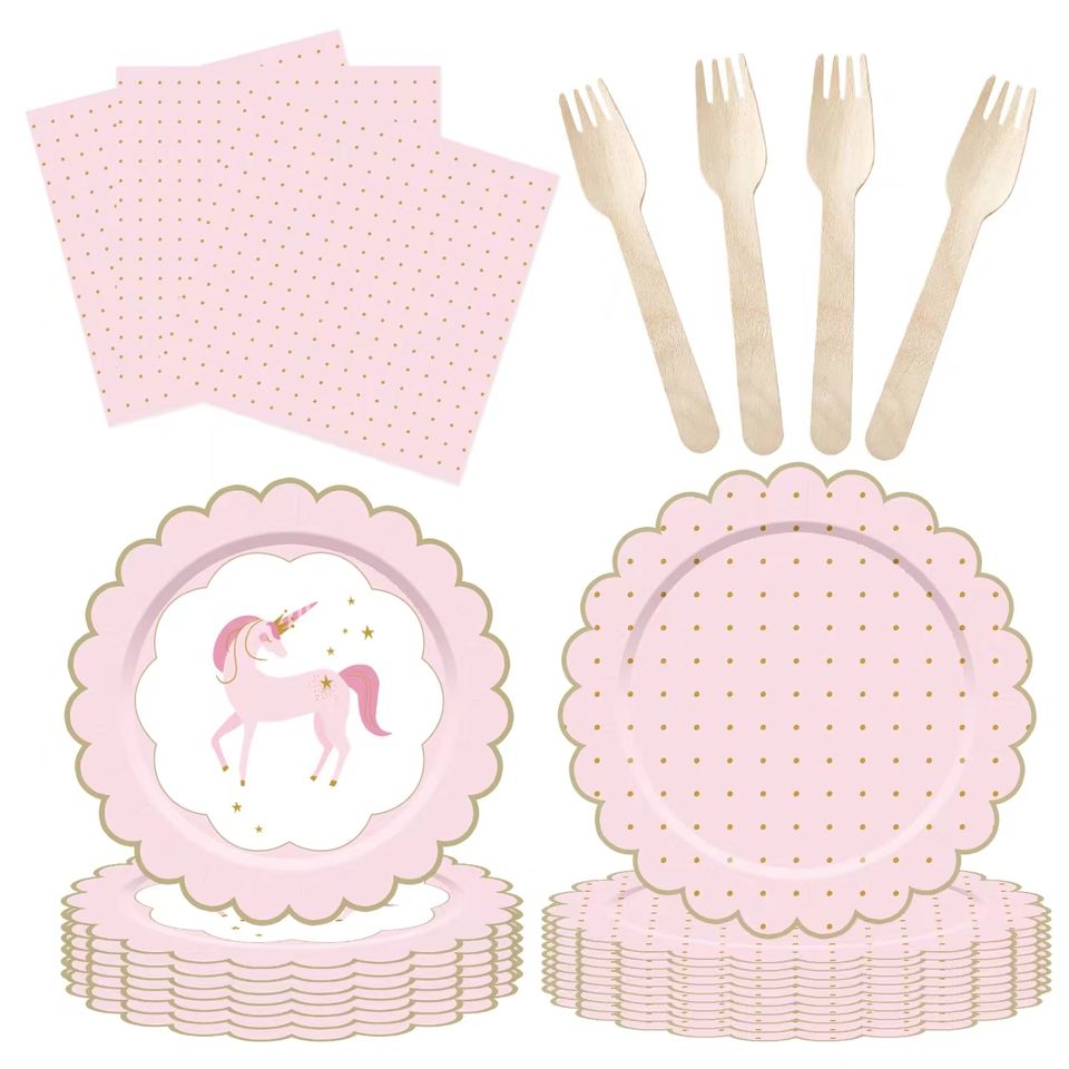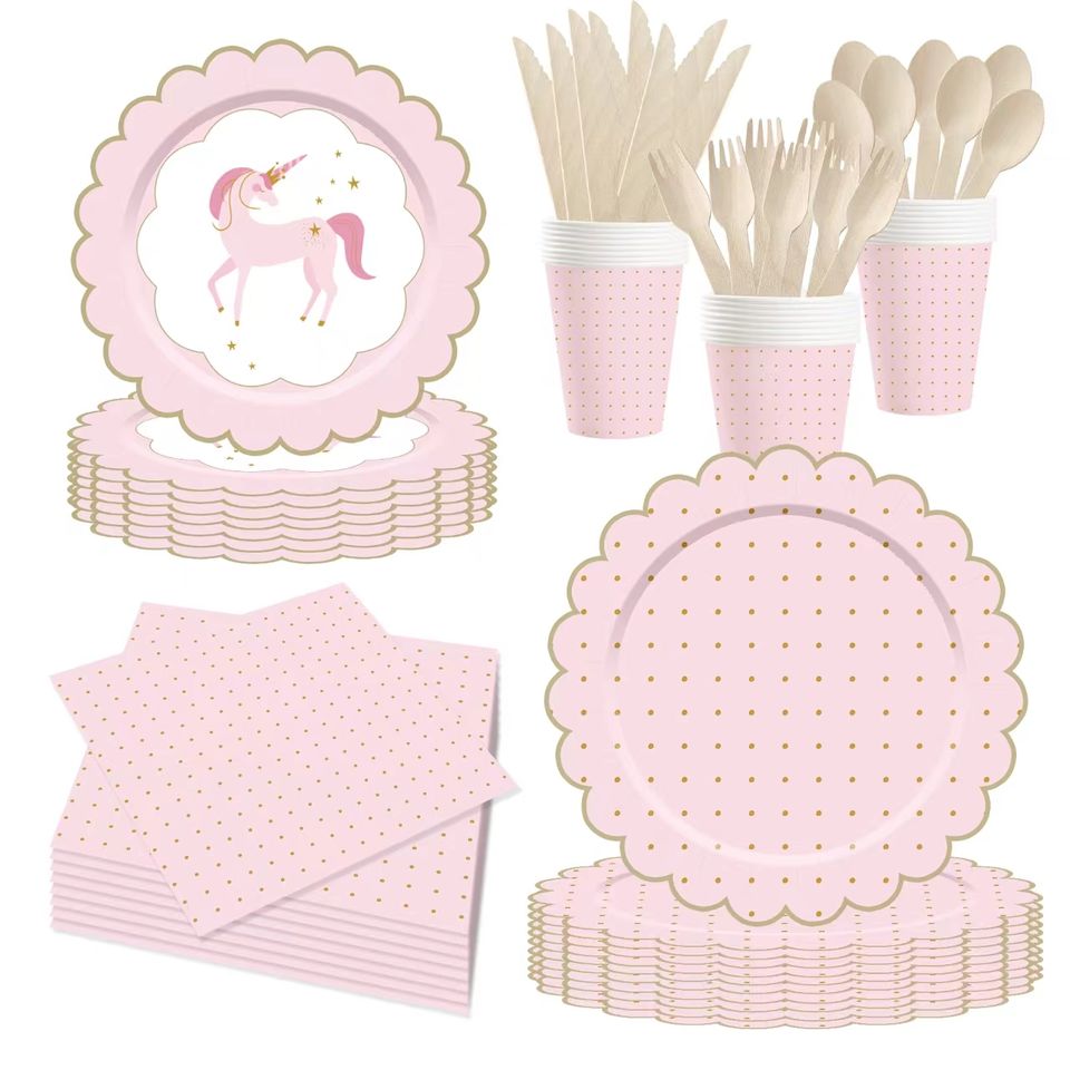 ชุดอุปกรณ์จัดงานวันเกิดเด็กฤดูร้อน DAMAI ลายยูนิคอร์นสีชมพู รูปทรงกลม ชุดจาน ชาม แก้วกระดาษ ผ้าเช็ดปากแบบใช้แล้วทิ้ง