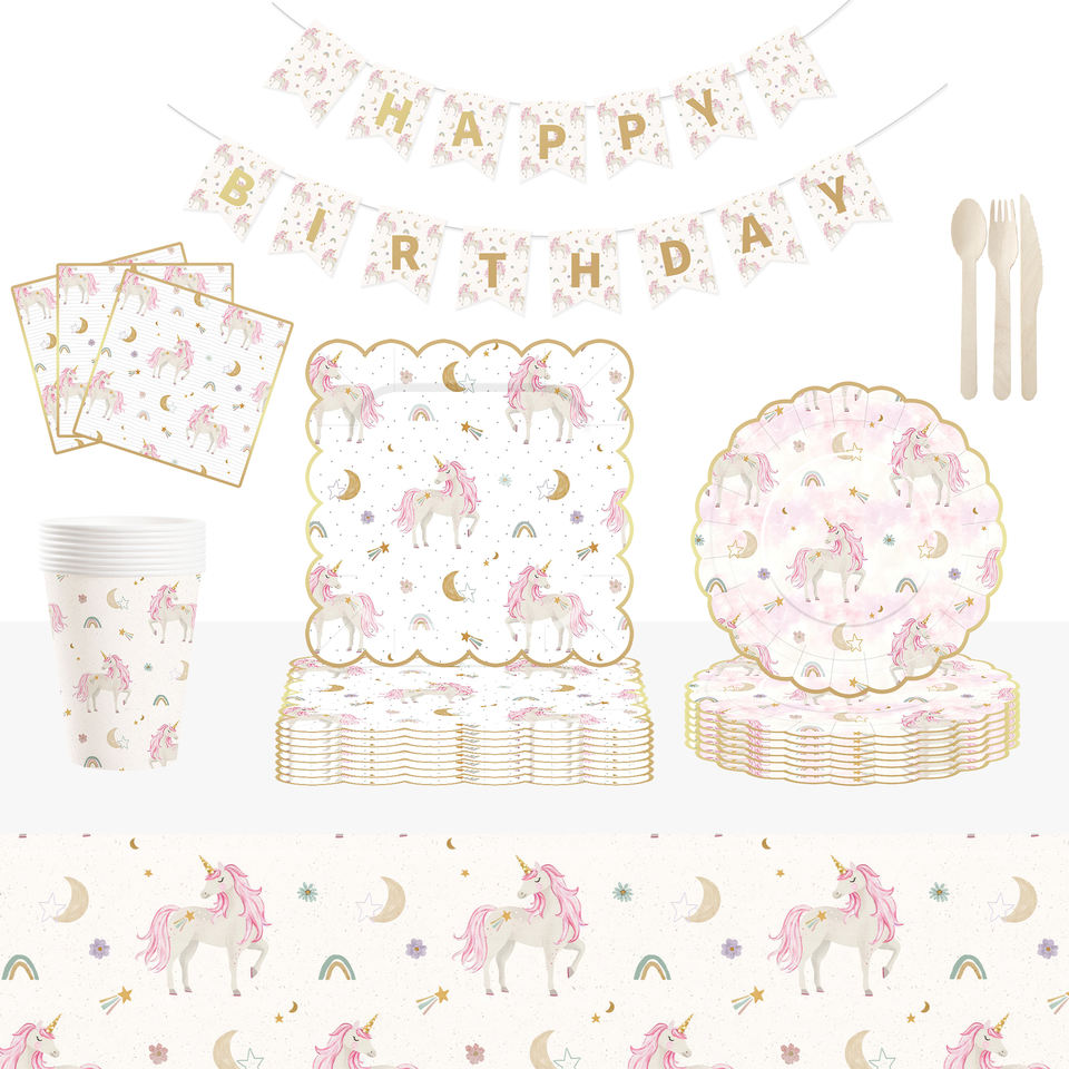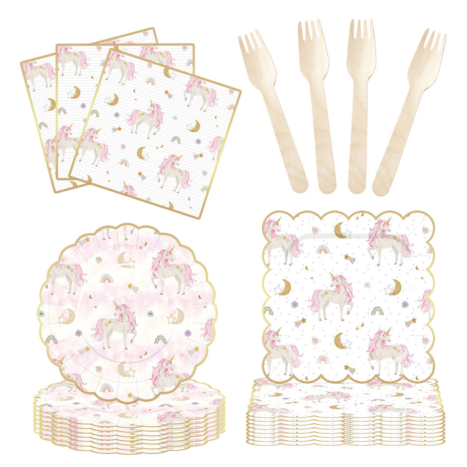 ชุดอุปกรณ์จัดงานวันเกิดธีมยูนิคอร์น DAMAI สำหรับเด็ก สีชมพูเชอร์รี่ ประกอบด้วย จาน ชาม แก้วกระดาษ และผ้าเช็ดปากแบบใช้แล้วทิ้ง