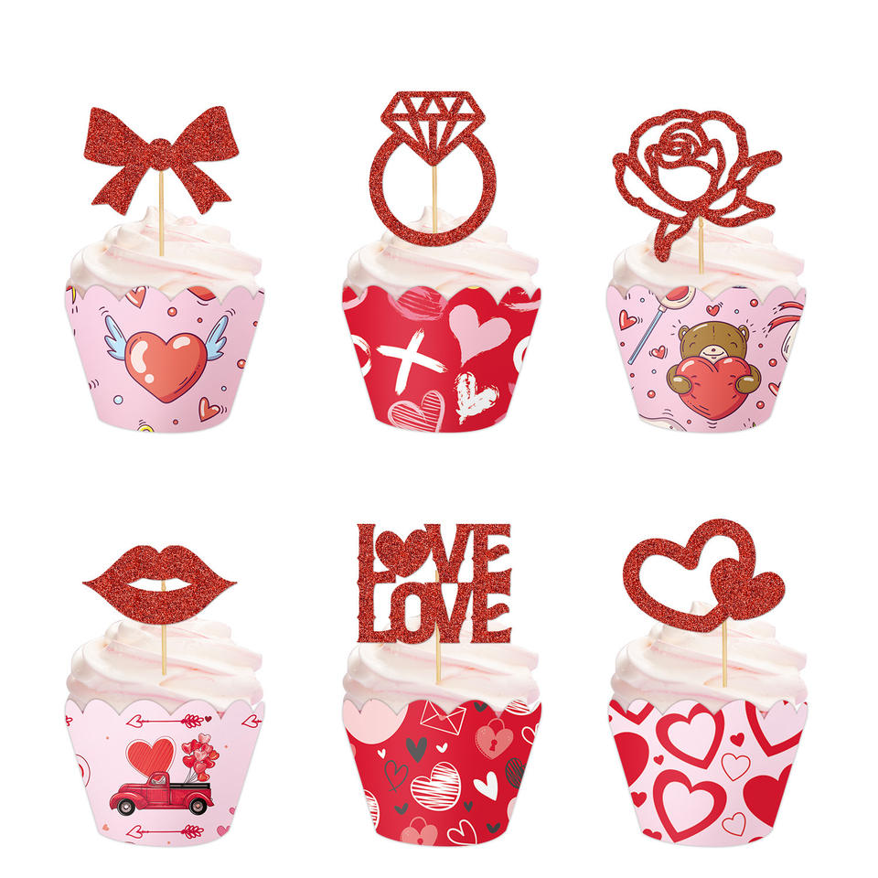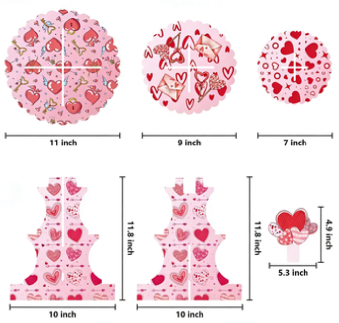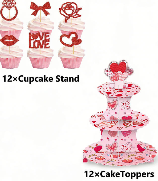 ขาตั้งเค้กกระดาษ 3 ชั้น DAMAI สำหรับวันวาเลนไทน์ พร้อมกระดาษห่อคัพเค้กและท็อปเปอร์ ของตกแต่งโต๊ะขนมหวานสำหรับงานปาร์ตี้สุดโรแมนติก