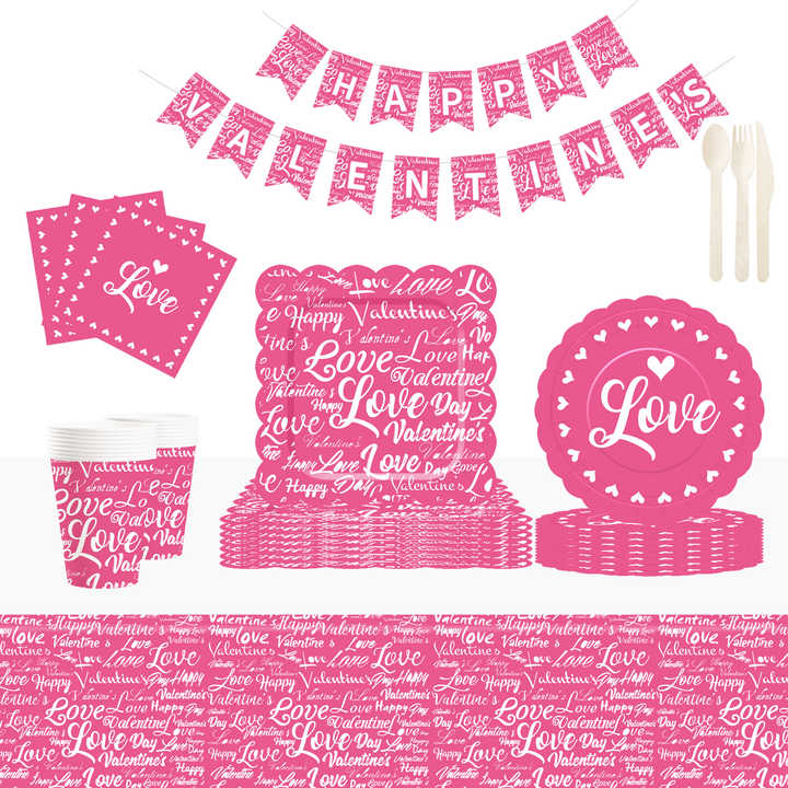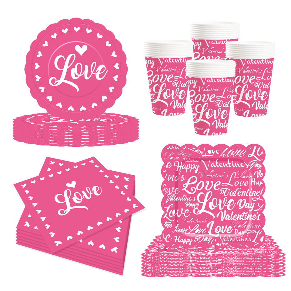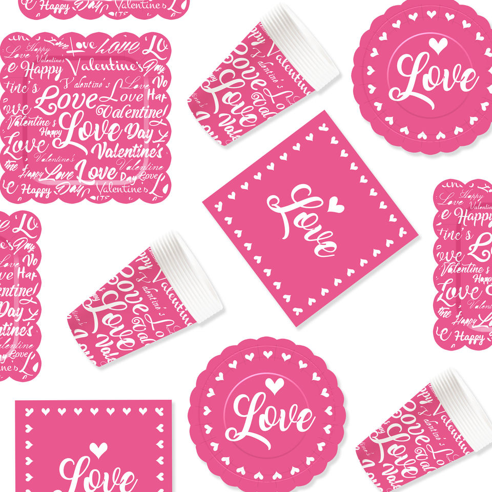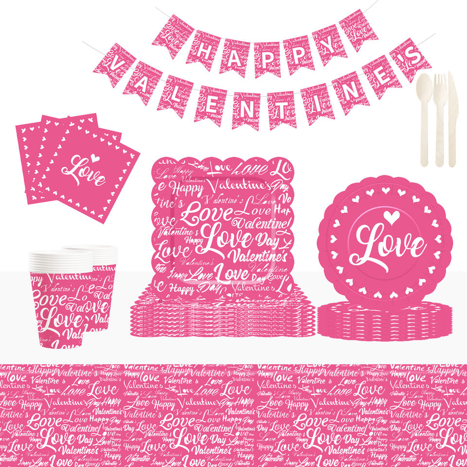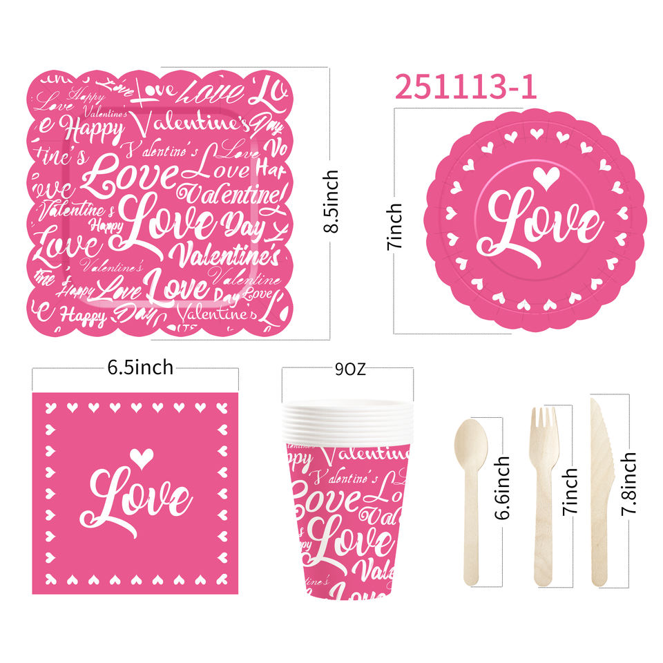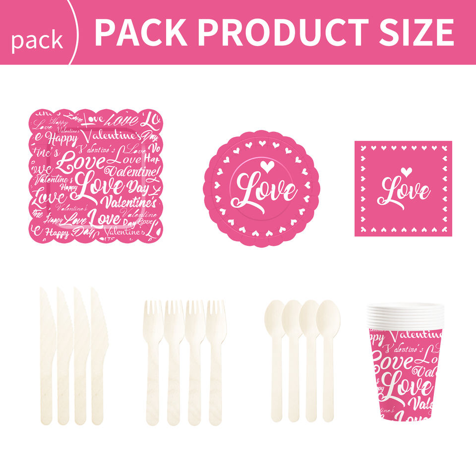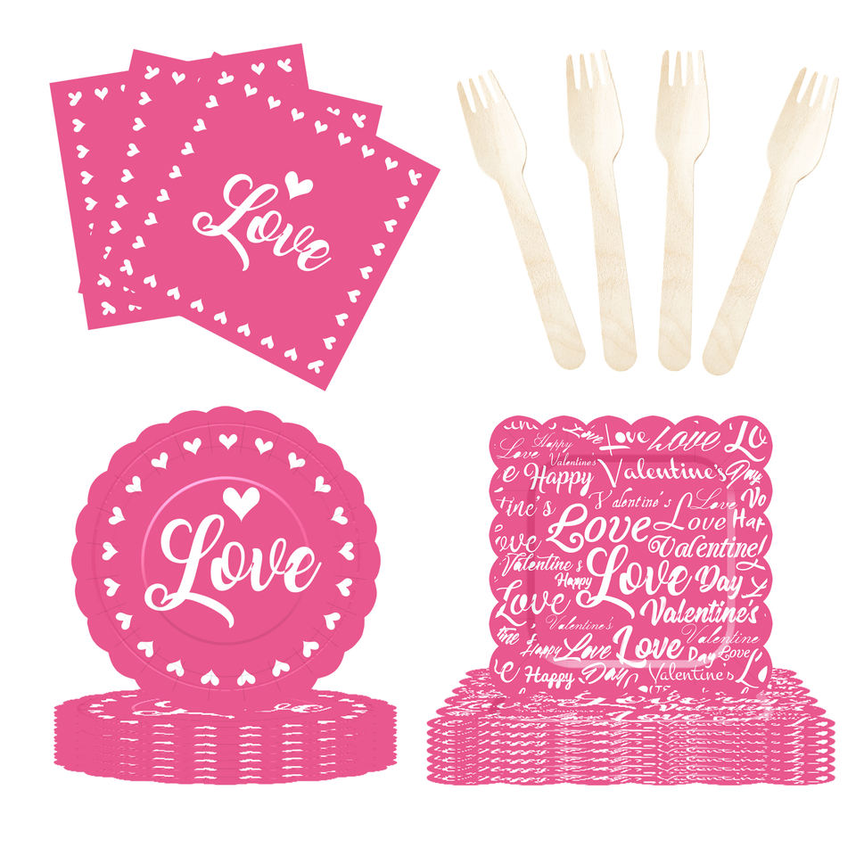 ชุดจานชามวันวาเลนไทน์ DAMAI จานกระดาษวันวาเลนไทน์ ผ้าเช็ดปากสำหรับงานเลี้ยงวันวาเลนไทน์สุดโรแมนติก สำหรับ 8 ท่าน
