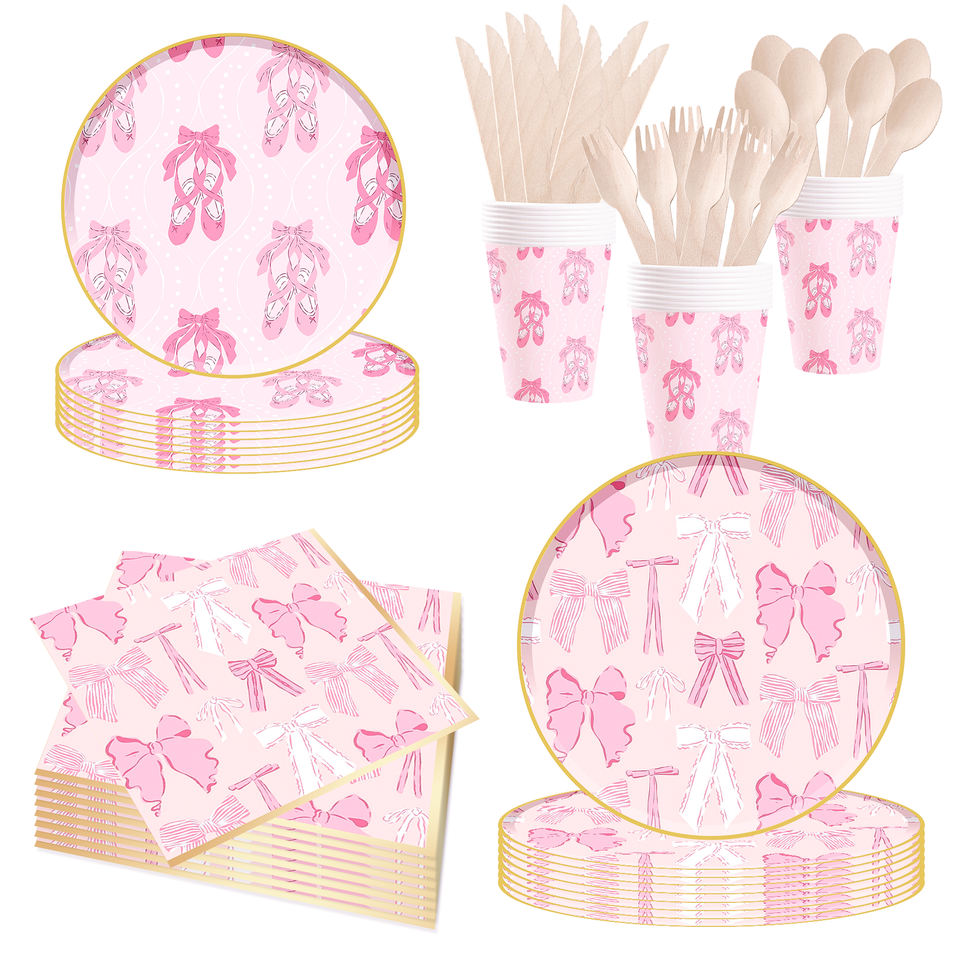 DAMAI Wedding Princess Party Kids Birthday Party Supplies Pink Bowknot Elements Disposable Tableware Paper Napkins Cups Plates