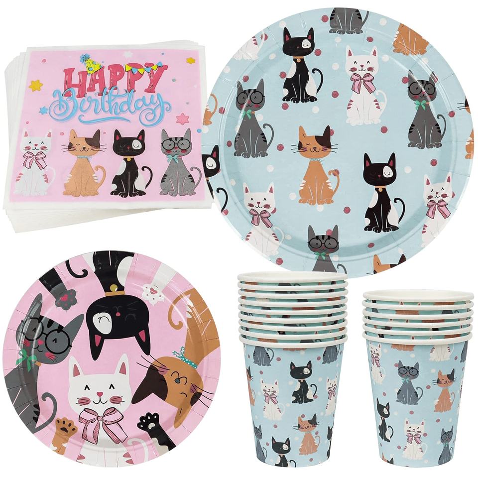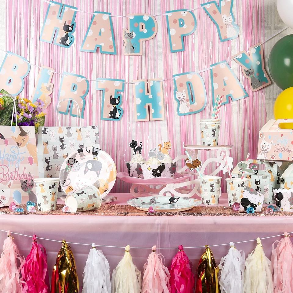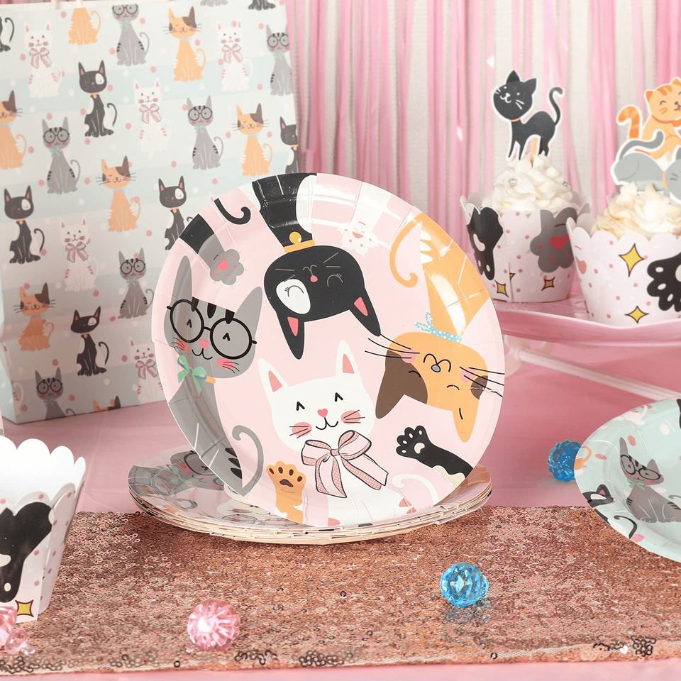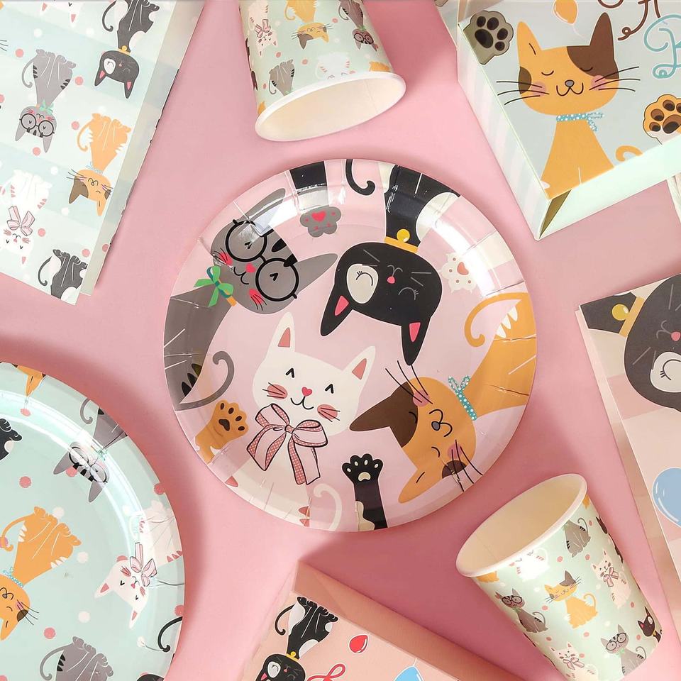 ชุดจานกระดาษลายการ์ตูนสัตว์สีชมพูสำหรับงานเลี้ยงวันเกิดแมว DAMAI อุปกรณ์จัดงานเลี้ยงวันเกิดแมวแบบใช้แล้วทิ้ง ชุดจานกระดาษลายสัตว์สำหรับตกแต่งงานเลี้ยงวันเกิดเด็ก