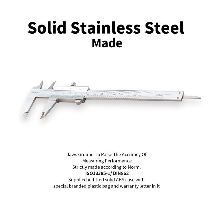 DASQUA High Precision 0-150mm 0-6inch Stainless Steel Monoblock Vernier Caliper Manual Analog Caliper Measuring Tools