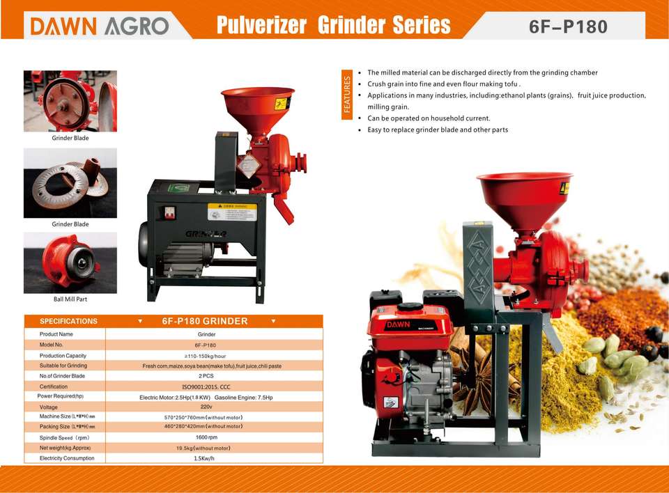 เครื่องบดแป้งข้าวโพดแบบดิสก์ DAWN AGRO เครื่องบดเมล็ดพืช เครื่องบดอาหารสัตว์ เครื่องบดแบบพกพาใช้แก๊สโซลีน