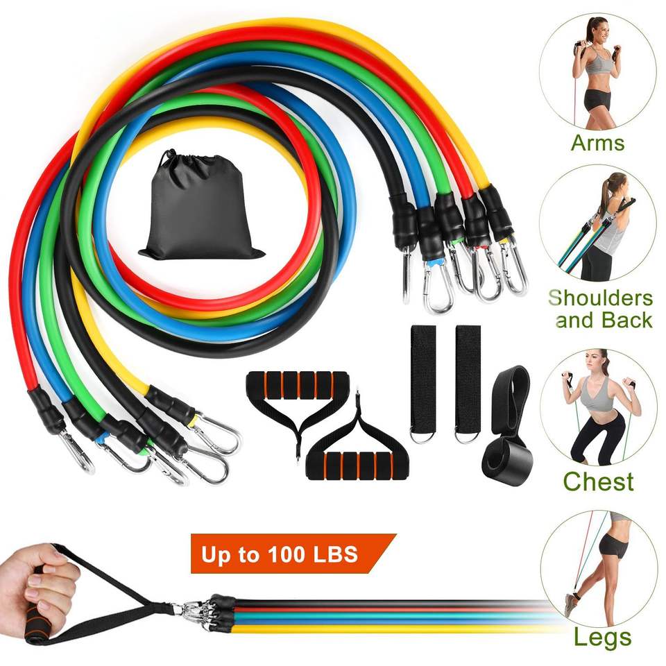 DB 11pcs Heavy Resistance Bands Set Long Fitness Workout Tubes up to 100lbs with Door Anchor Handles and Ankle Straps