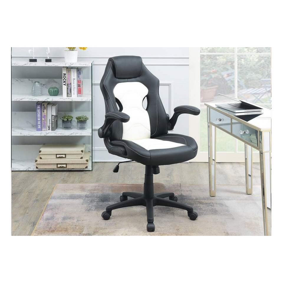 DB เก้าอี้ทำงานหุ้มเบาะสีดำและสีขาวสำหรับเล่นเกมผ่อนคลาย1ชิ้น