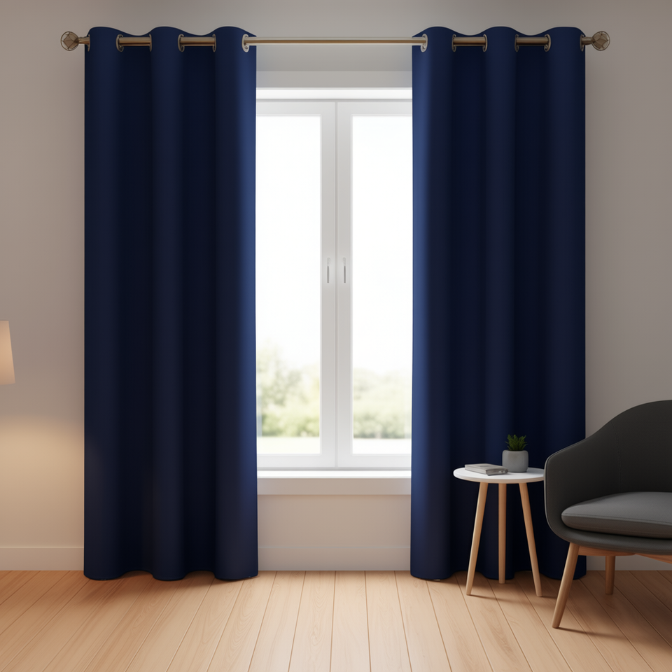 ผ้าม่านกันแสงสีกรมท่า 2 ชิ้น ขนาด 42x84 นิ้ว แบบรูตาไก่ สำหรับห้องนอน สไตล์โมเดิร์น สีพื้น