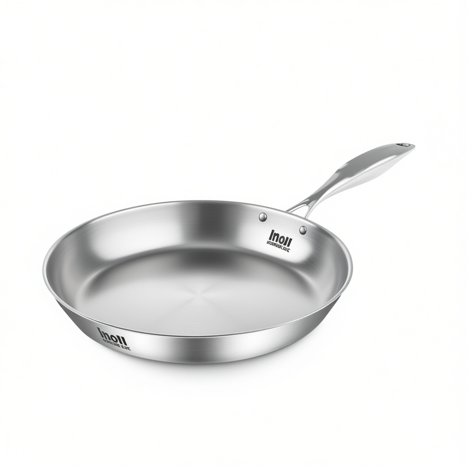 กระทะสเตนเลสสตีล Inoll ขนาด 22 ซม. ใช้กับเตาแม่เหล็กไฟฟ้าได้ ผิวเคลือบกันติด ดีไซน์เรียบง่ายสำหรับการทำอาหารที่บ้าน