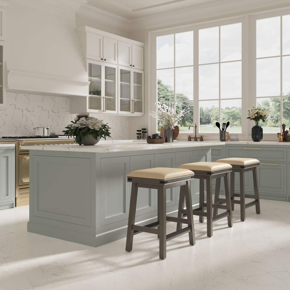 DB 24 "เก้าอี้เคาน์เตอร์แบบร่วมสมัยเบาะหนังสีเทาฝรั่งเศสปรับได้กรอบเหล็กทนต่อสภาพอากาศสีเทาสำหรับห้องครัวบาร์คลับอีฟ