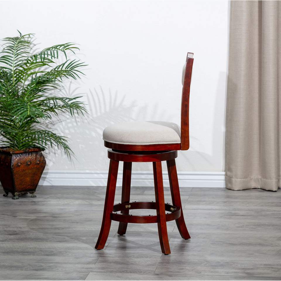 เก้าอี้หมุนกลับ X ความสูงเคาน์เตอร์ DB 24 "พร้อมเก้าอี้ผ้าสีเบจเก้าอี้บาร์ผิวสีเชอร์รี่