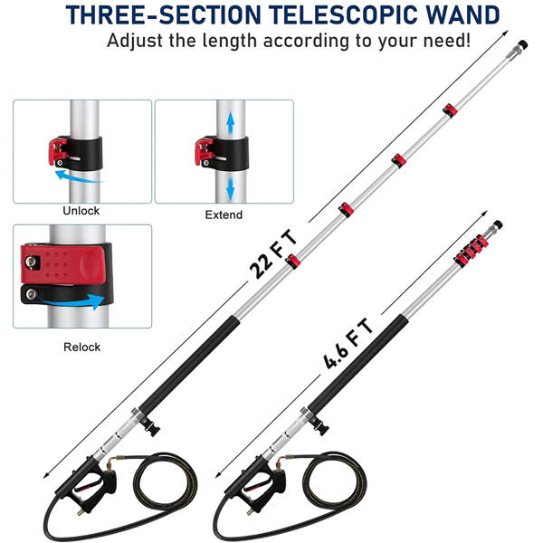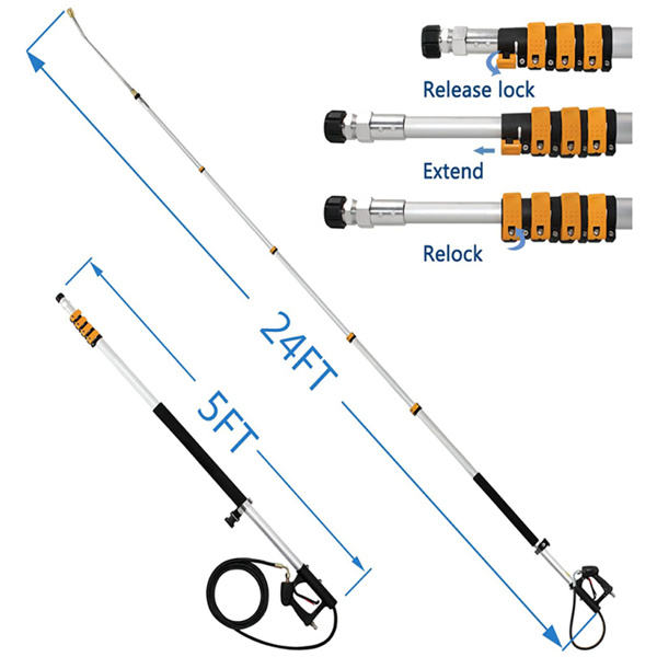 เครื่องฉีดน้ำแรงดันสูง 24 ฟุต พร้อมปืนฉีดแบบยืดหดได้ 3 แรงม้า ใช้ไฟฟ้า สำหรับขจัดคราบไขมัน