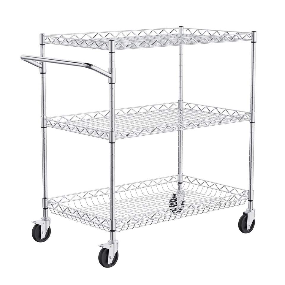 DB 3-Tier Rolling Utility Cart with 661 LBS Capacity 6 Hooks and Wheels 30"x18"x32.4"