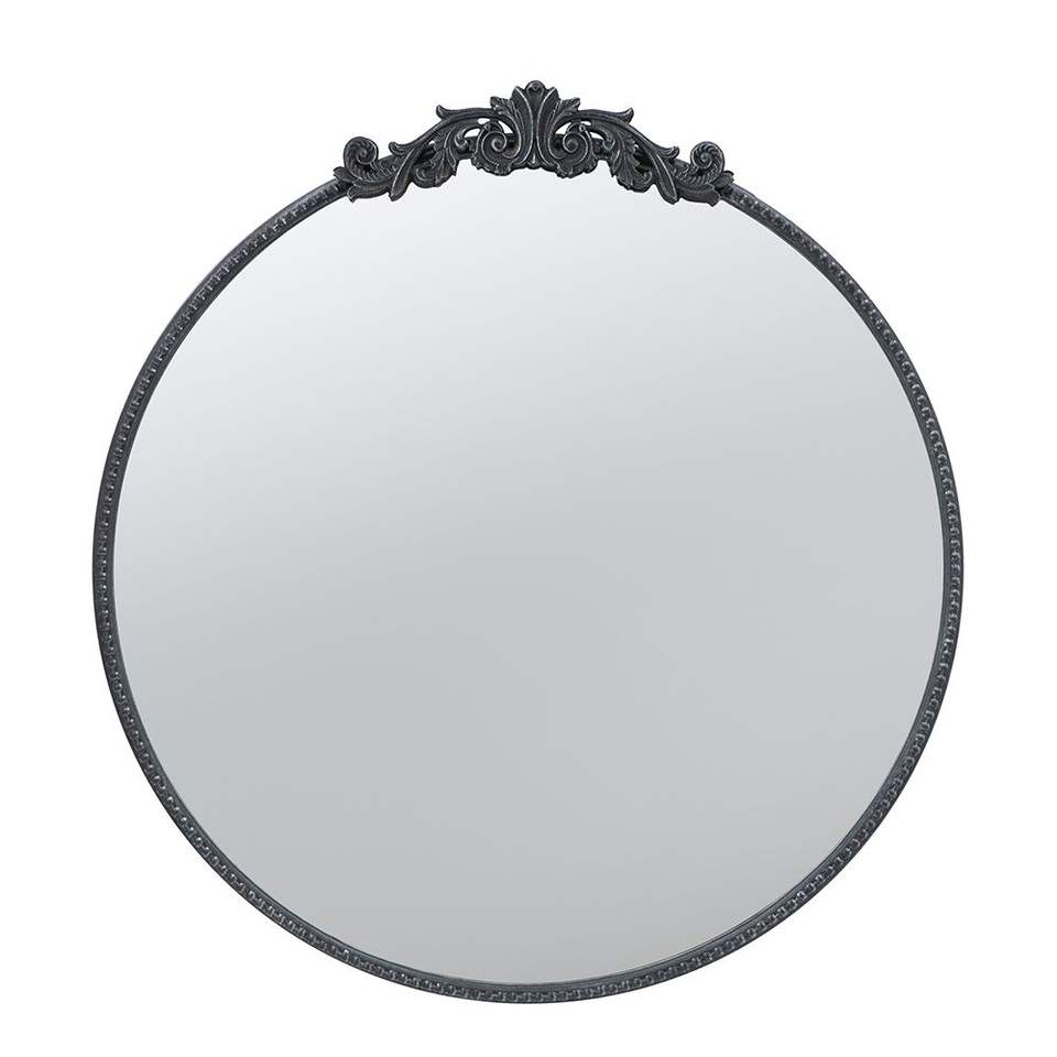 DB 30 "x 32" กระจกอาบน้ำดีไซน์คลาสสิกพร้อมกรอบทรงกลมสไตล์บาโรกที่ได้รับแรงบันดาลใจจากผนังคอนโซลทางเข้า