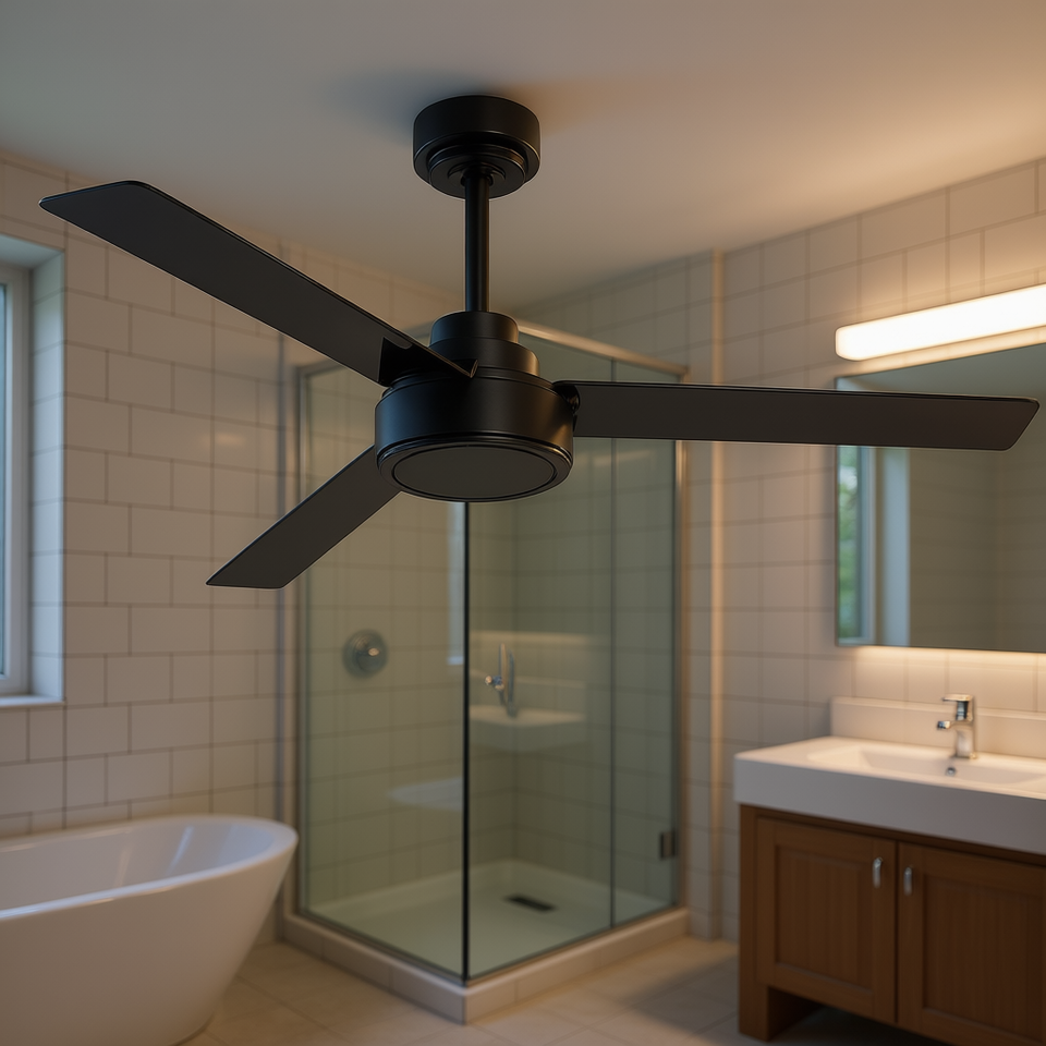 พัดลมเพดาน 52 นิ้ว มอเตอร์ดีซี 3 ใบพัด ปรับทิศทางลมได้ แบบเสียบปลั๊ก US สำหรับใช้ในห้องน้ำ